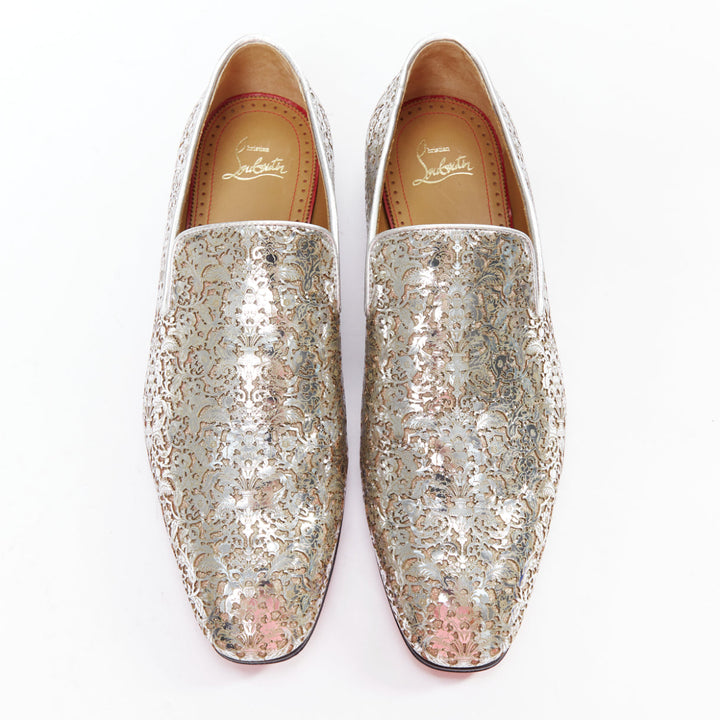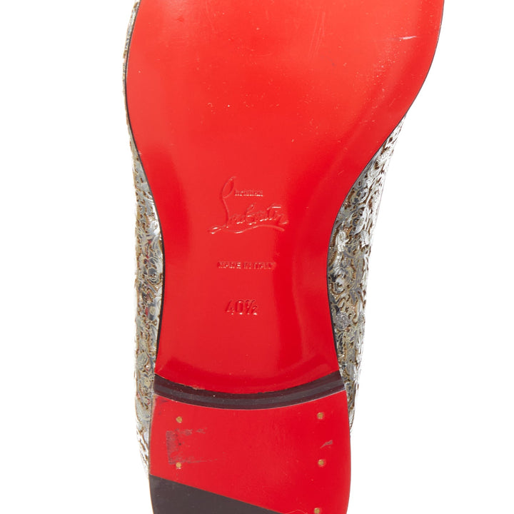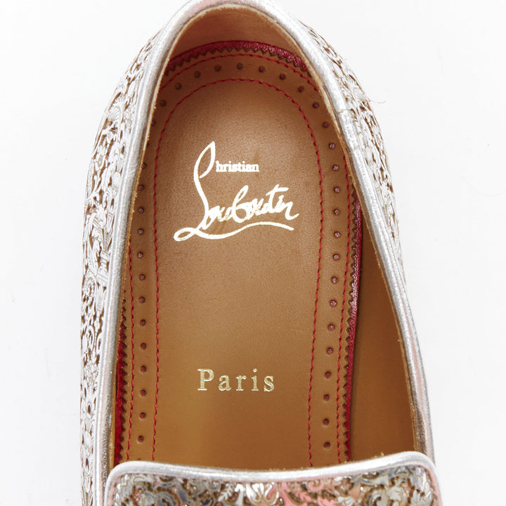 CHRISTIAN LOUBOUTIN Dandelion silver mirrored laser cut leather loafers EU40.5