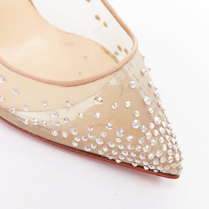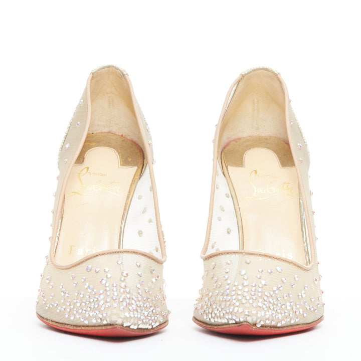 CHRISTIAN LOUBOUTIN Follies 100 clear mesh silver strass bridal pump EU35.5