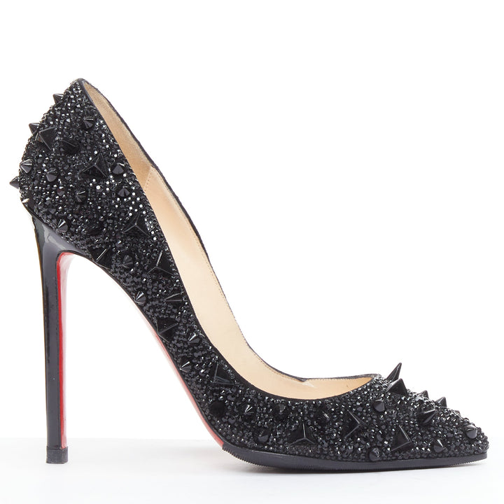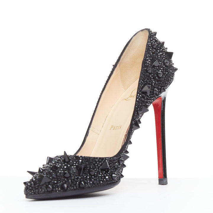 CHRISTIAN LOUBOUTIN Pigalili Potpourri Fifi 120 black spike strass pumps EU37