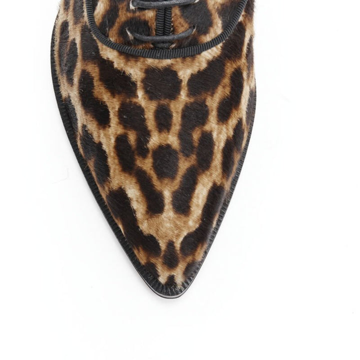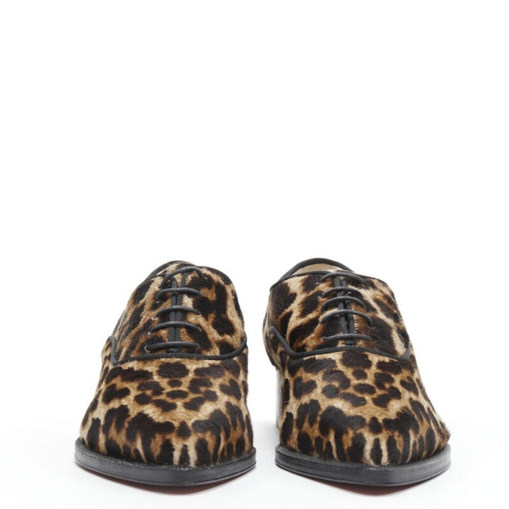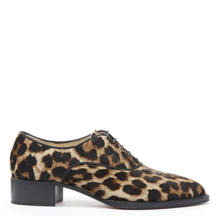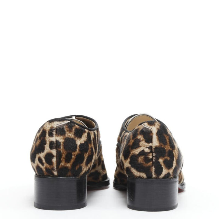 CHRISTIAN LOUBOUTIN Zazou Flat Pony brown leopard print oxford brogue EU35