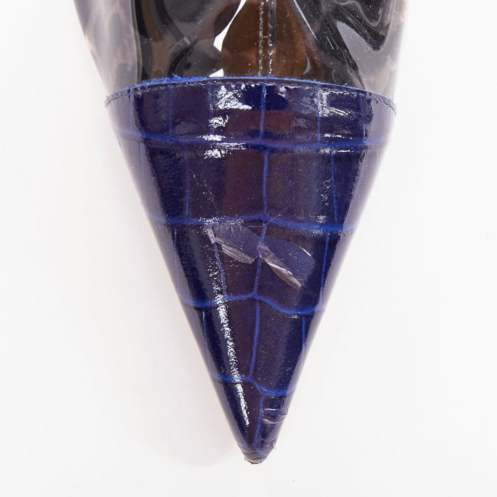 GIUSEPPE ZANOTTI Violaine Ankle blue embossed leopard PVC boots EU39