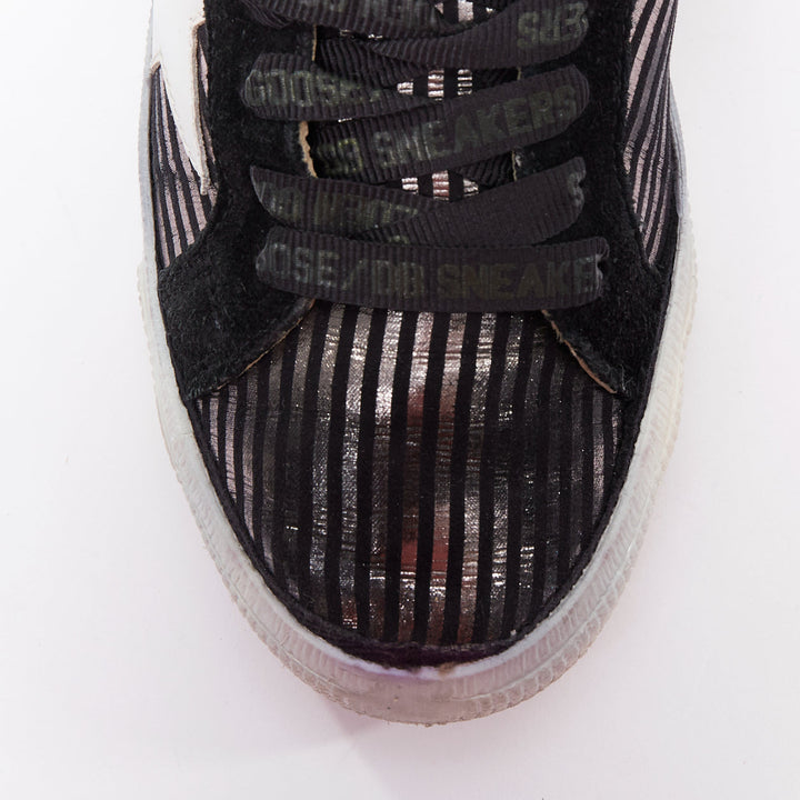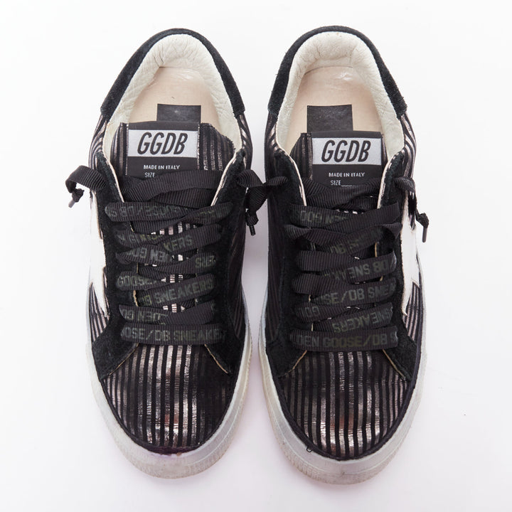 GOLDEN GOOSE Fancy metallic silver black stripe distressed sneakers EU36