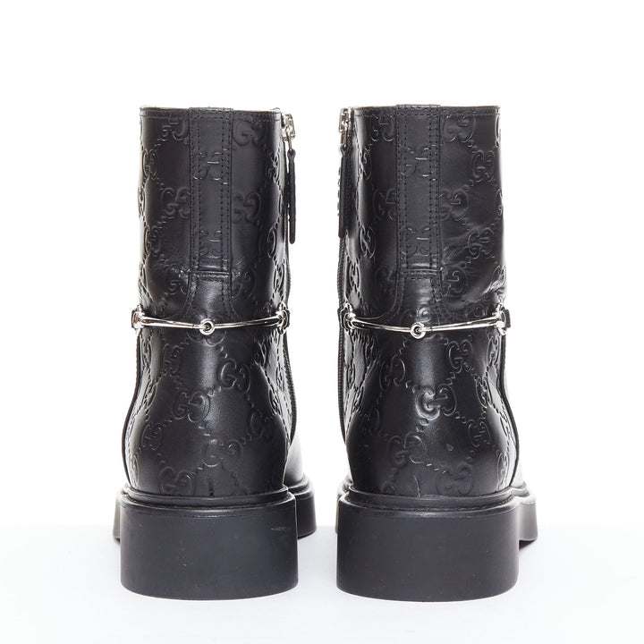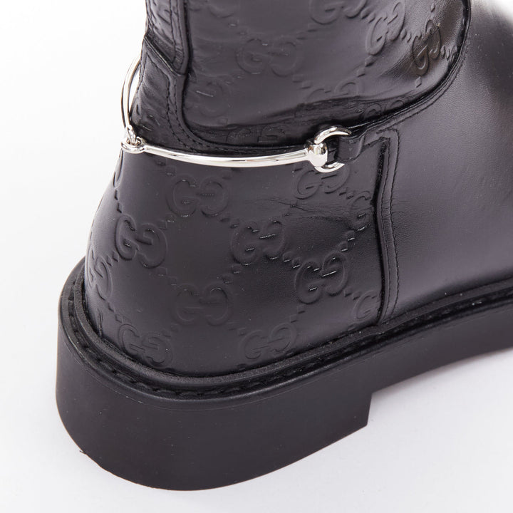 GUCCI Slim Horsebit black silver GG monogram embossed ankle boots EU37