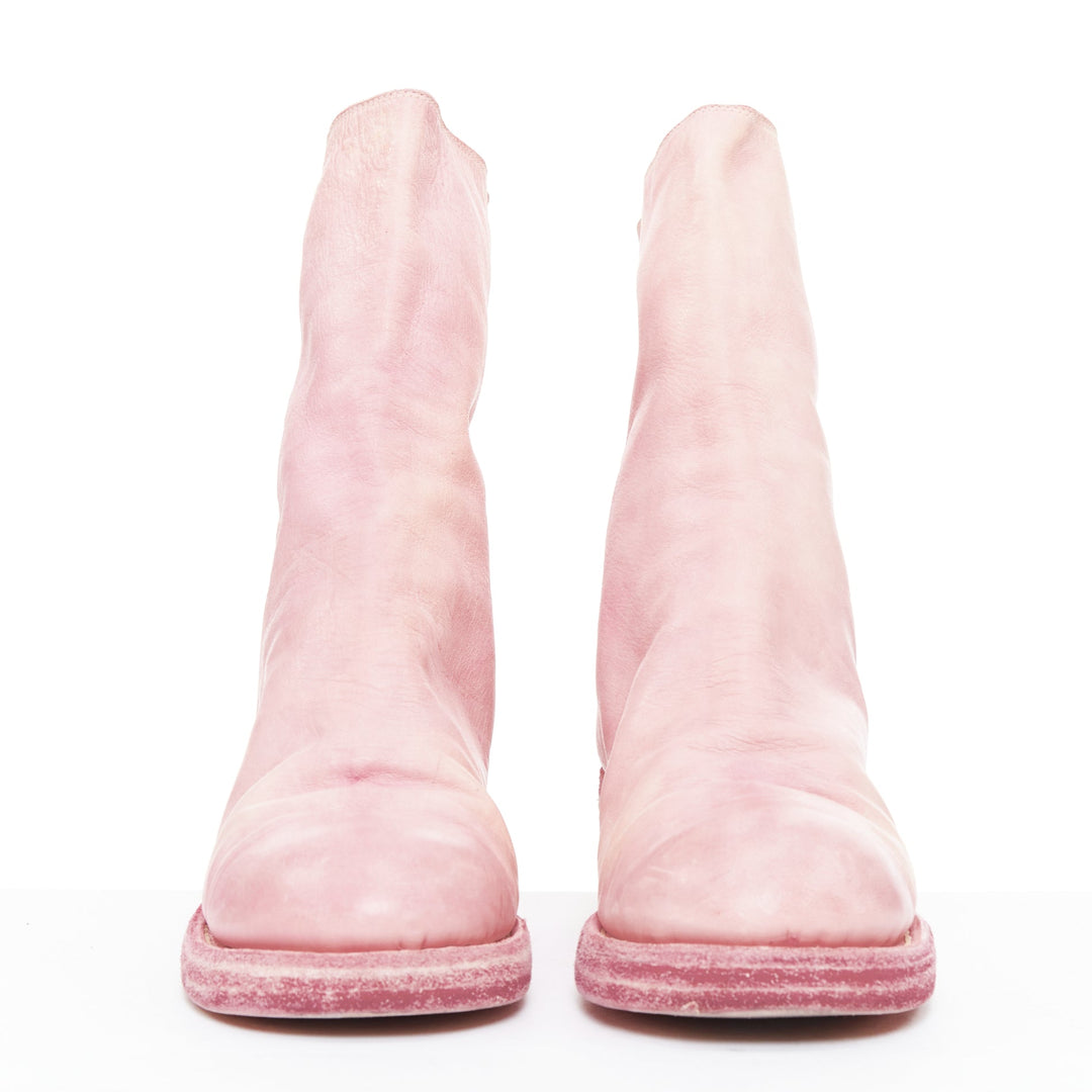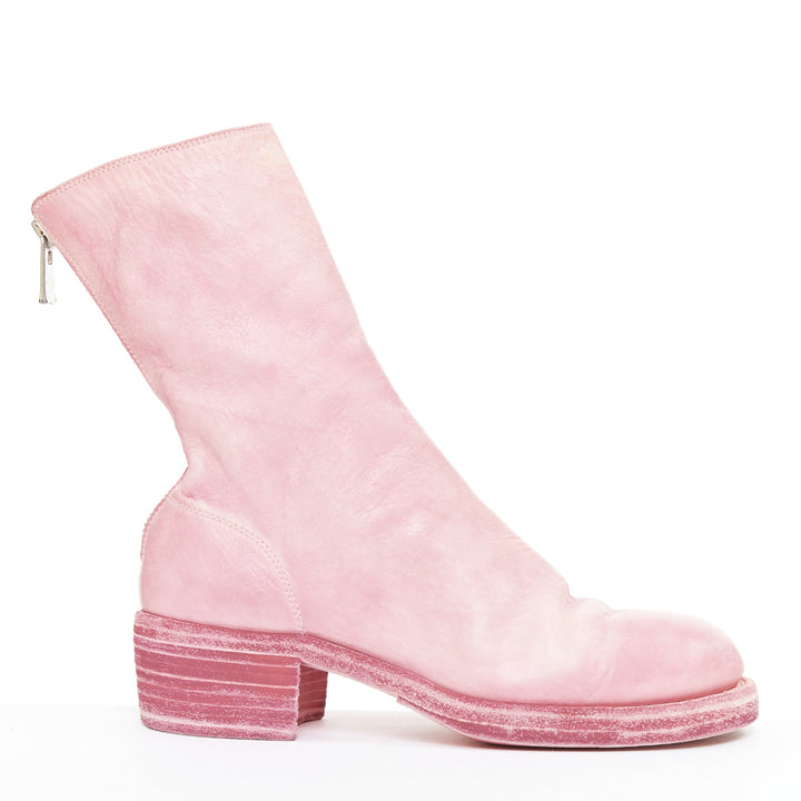 GUIDI Ink pink bubblegum distressed leather back zip block boots EU37