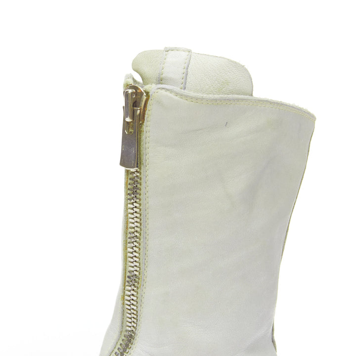 GUIDI light grey tumbled washed soft leather zip front boot EU37