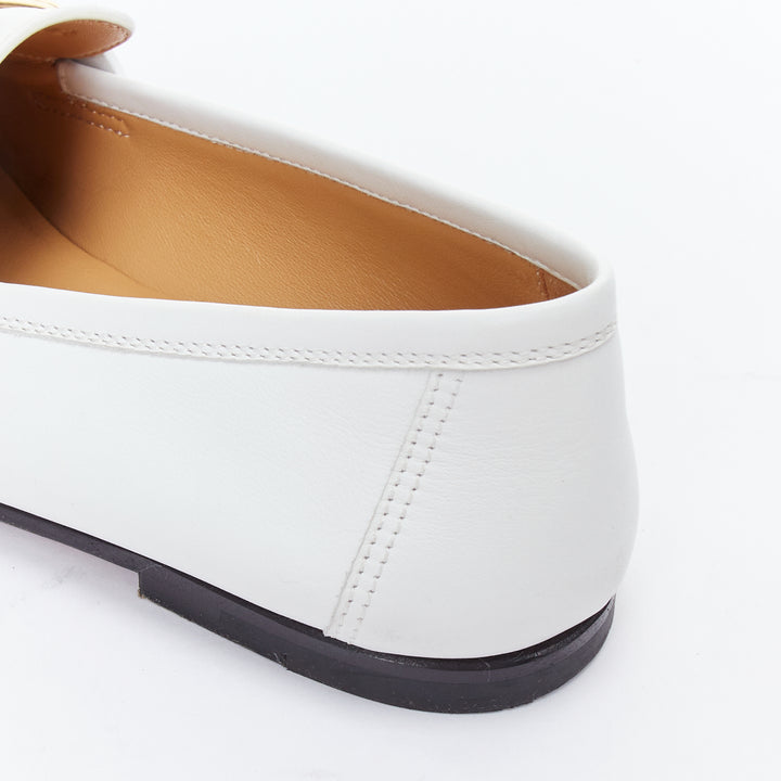HERMES Colette white goat leather gold plated Roulis buckle loafers EU37