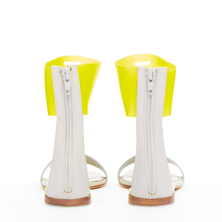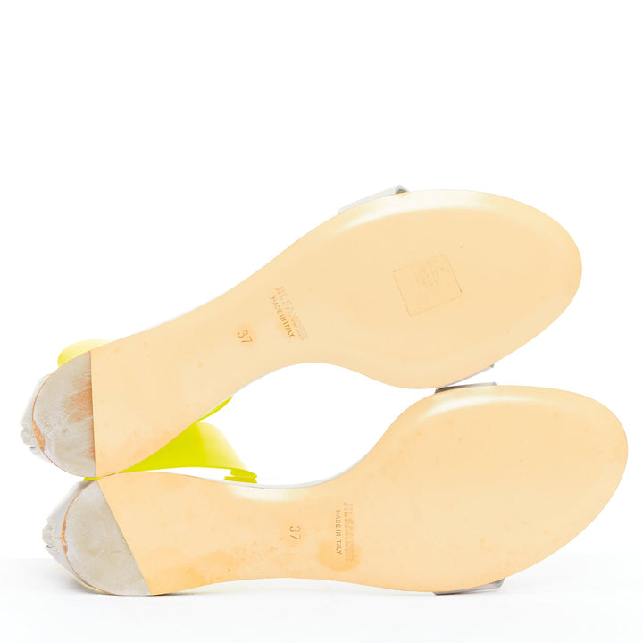JIL SANDER neon yellow rubber ankle strap grey leather flat sandals EU37