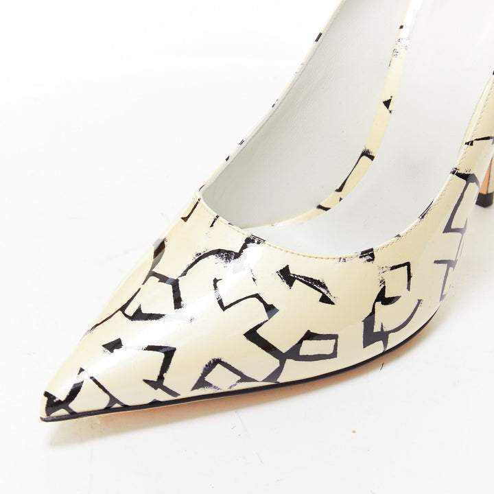 JIMMY CHOO ERIC HAZE Poggy black graphics pearl leather pumps EU38.5