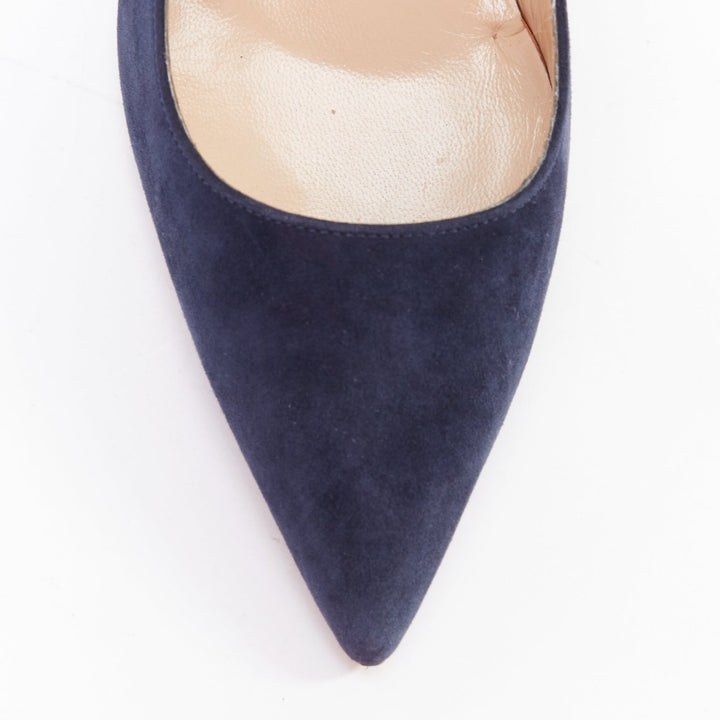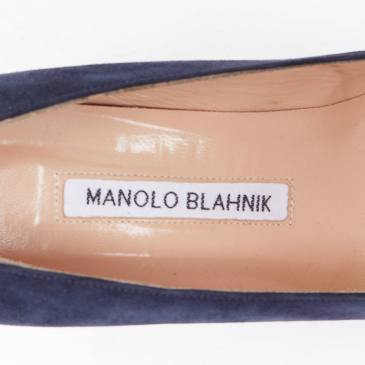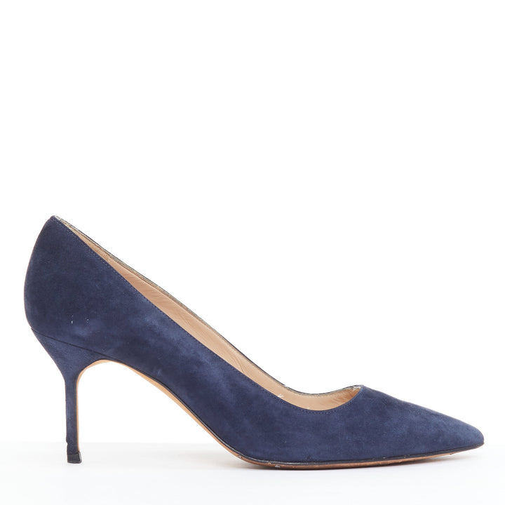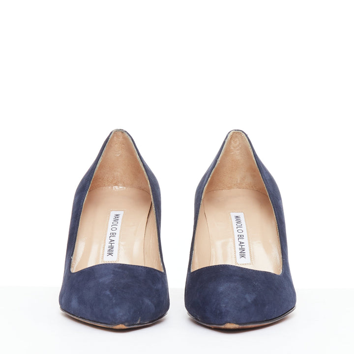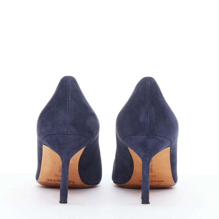 MANOLO BLAHNIK BB 70 navy suede leather point toe pumps EU36.5