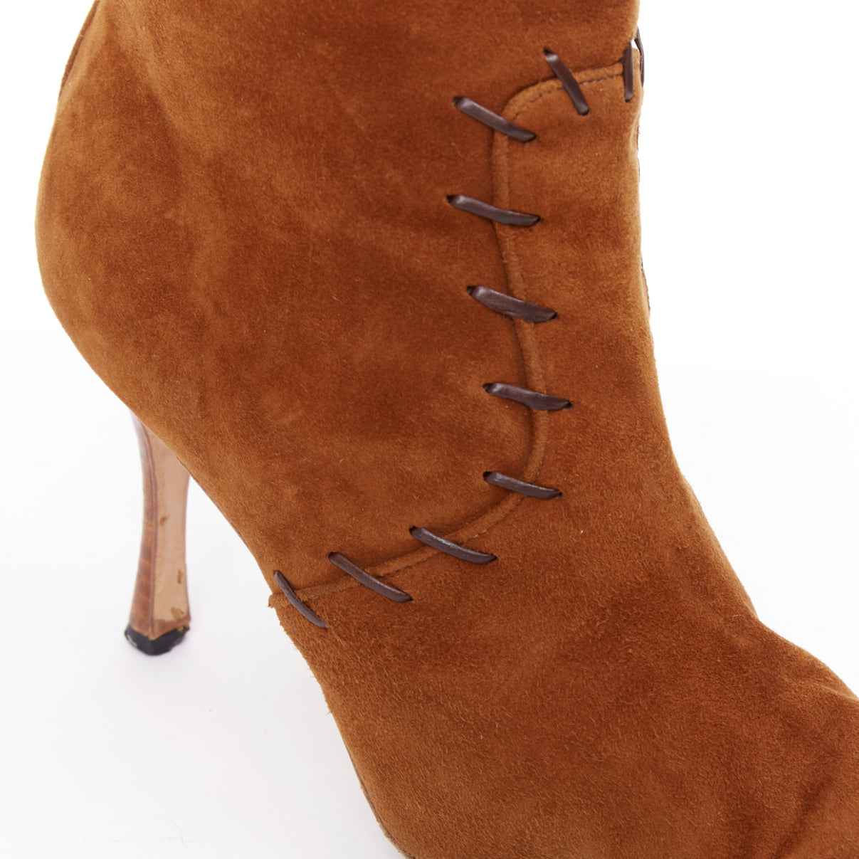 MANOLO BLAHNIK Vintage brown suede overstitch detail heeled ankle boots EU39.5