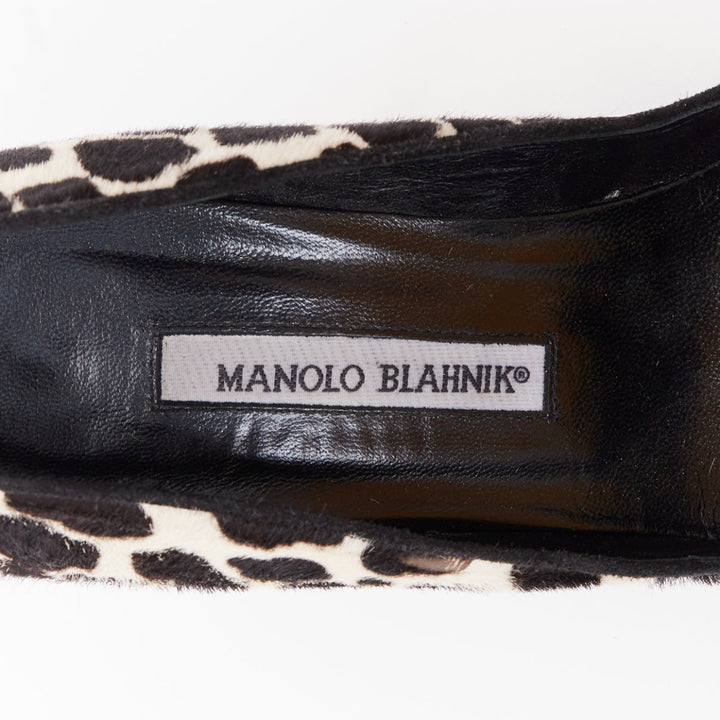 MANOLO BLAHNIK Vintage cow spot ponyhair crystal buckle pumps EU37