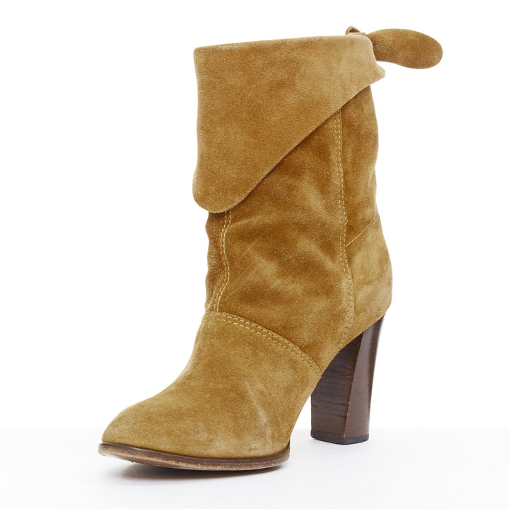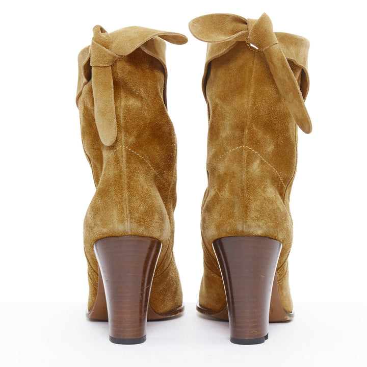 MARC JACOBS tan suede bow tie back slouchy western boots EU37.5