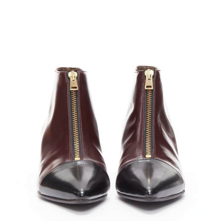 MARNI dark brown black toe cap kitten heel zip front bootie EU37