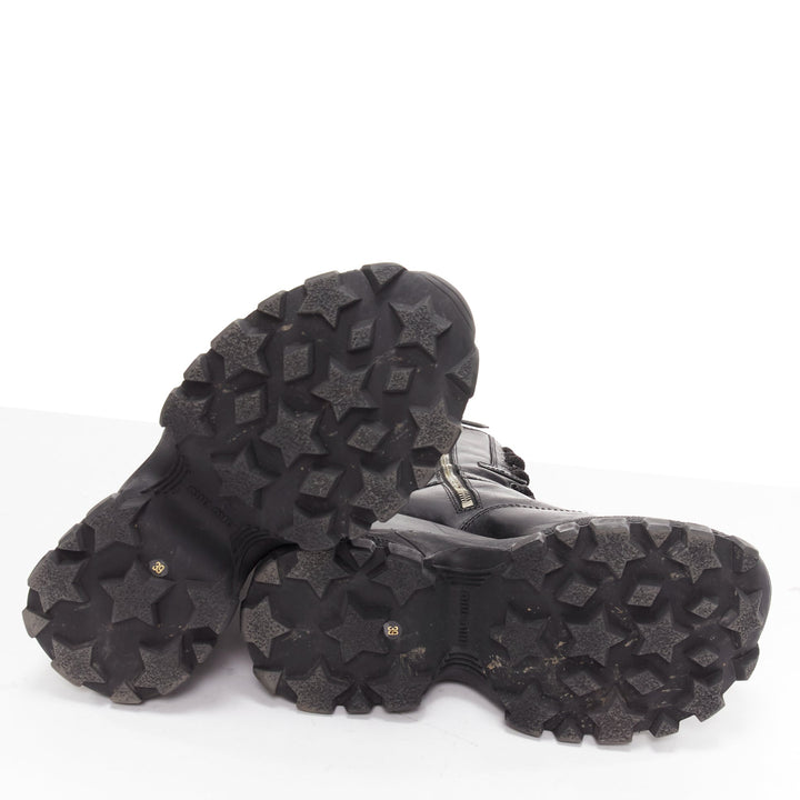 MIU MIU Runway black leather logo lace up chunky wedged military boots EU39