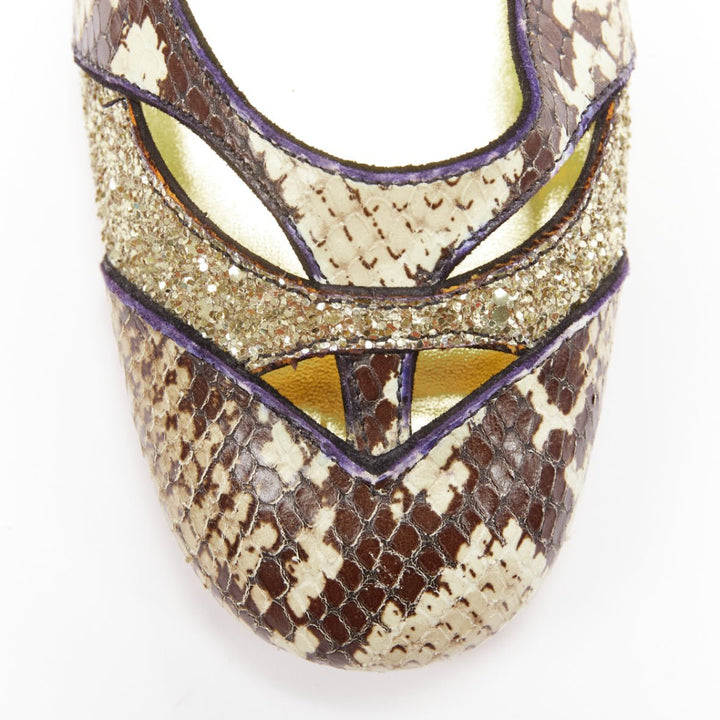 MIU MIU Vintage snake print gold course glitter chunky heel maryjane EU36.5