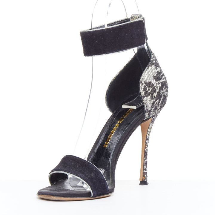 NICHOLAS KIRKWOOD black suede grey lace overlay sandals EU36