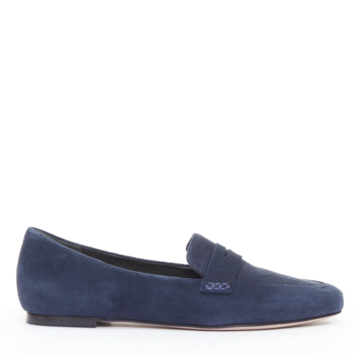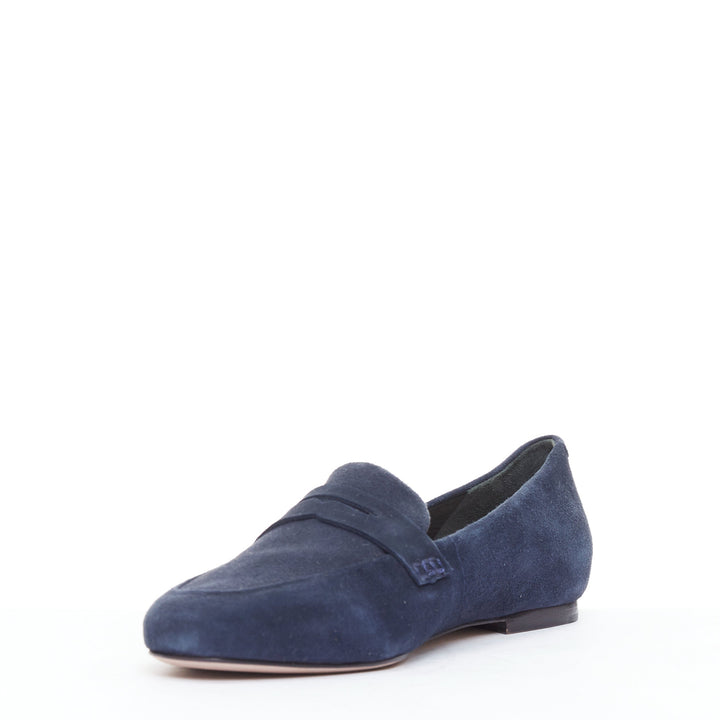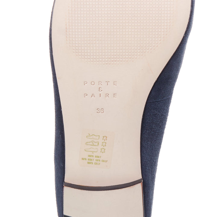 PORTE PAIRE navy suede leather classic minimal loafer flats EU36