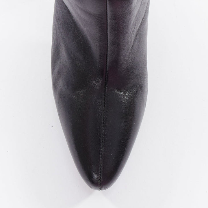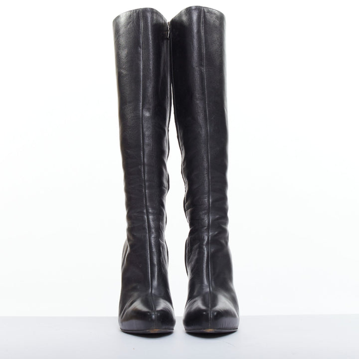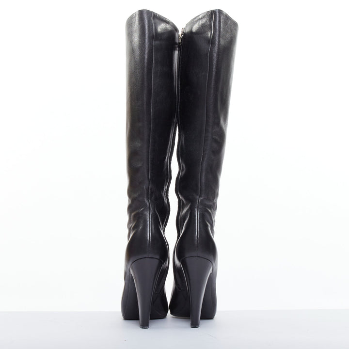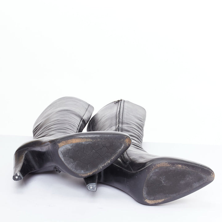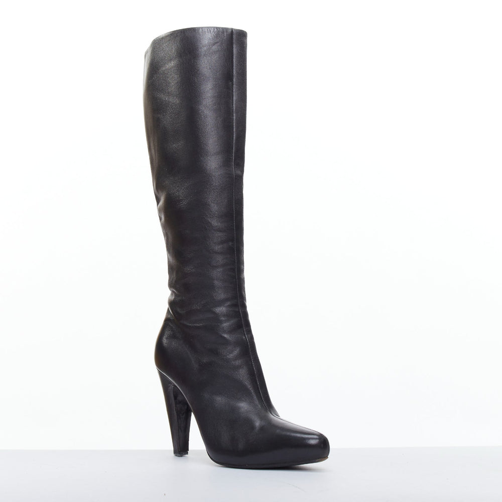 PRADA black leather cone heel pointy toes tall calf boots EU39