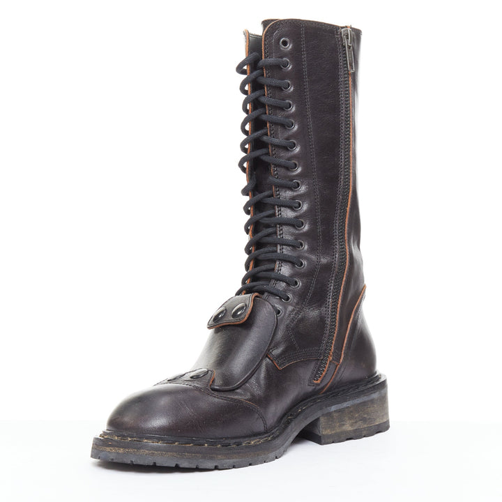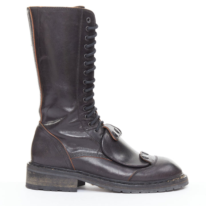 rare ANN DEMEULEMEESTER black leather snap button panels tall combat boots EU36