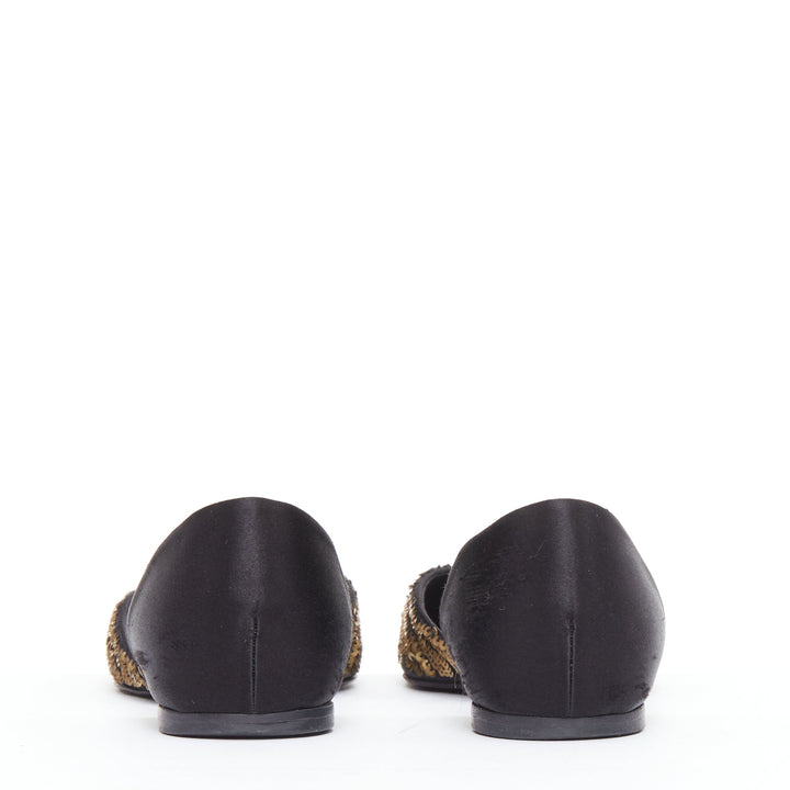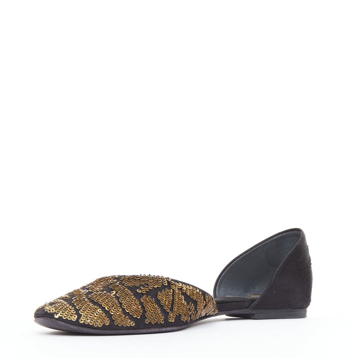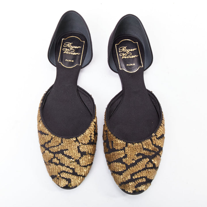 ROGER VIVIER gold sequin black satin half dorsay ballerina flats EU34