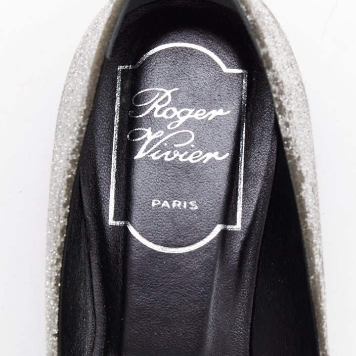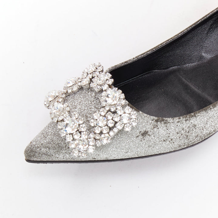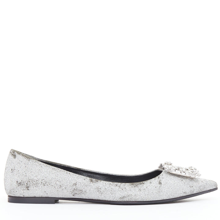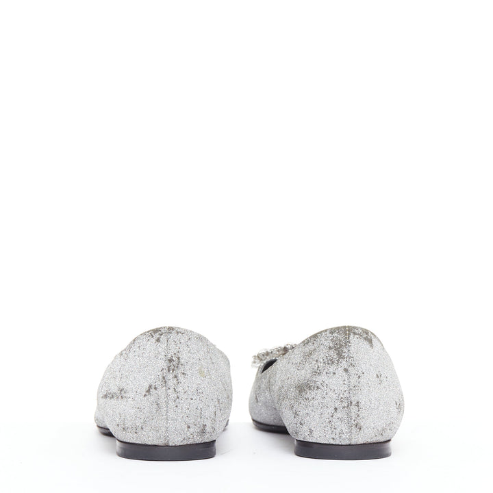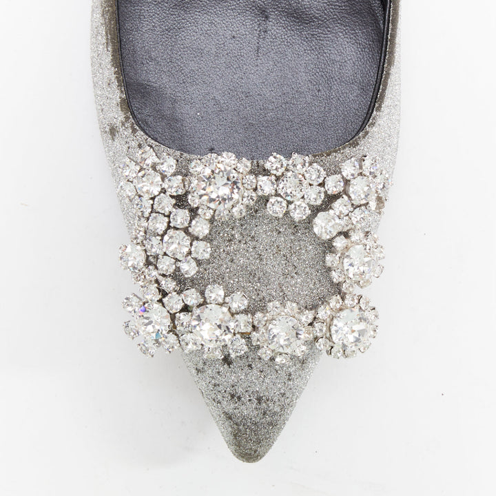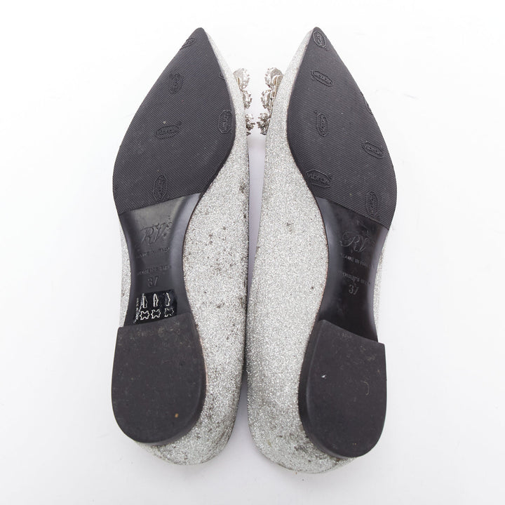 ROGER VIVIER silver glitter crystal buckle pointy toe ballerina flats EU37