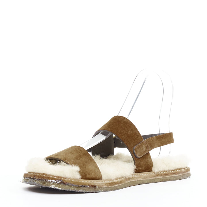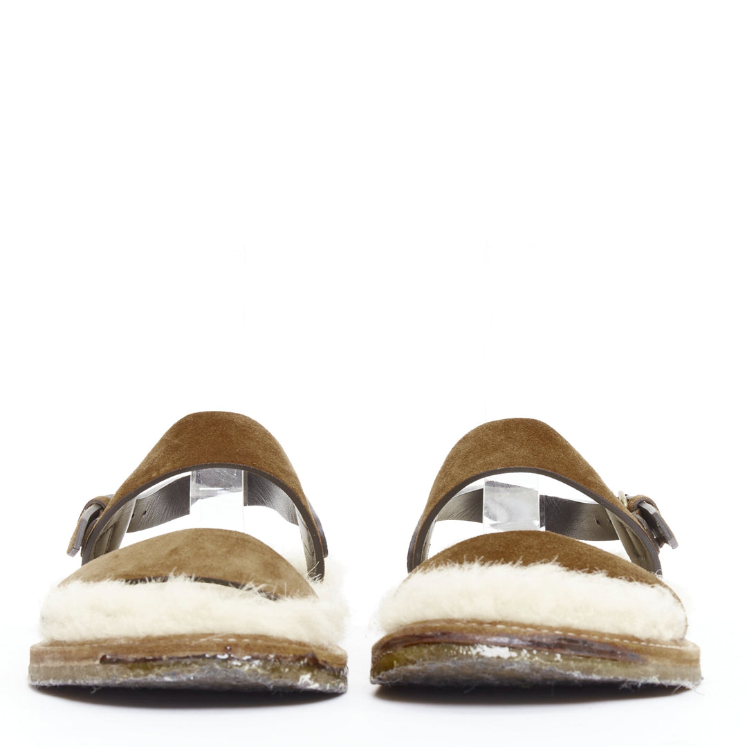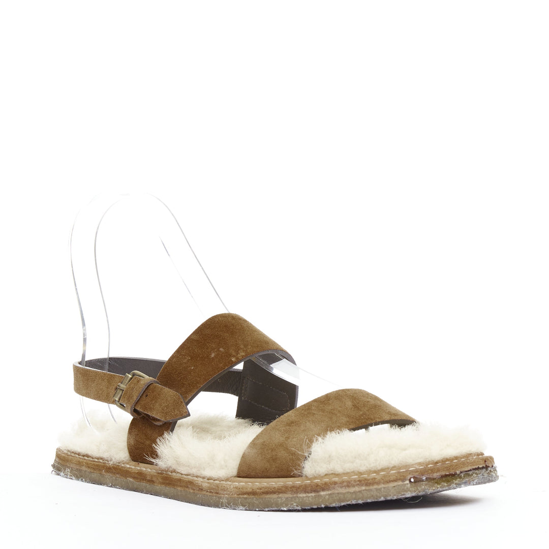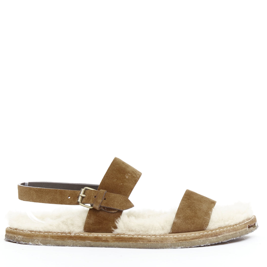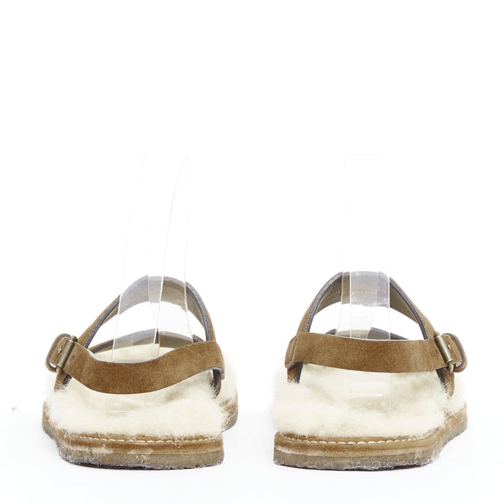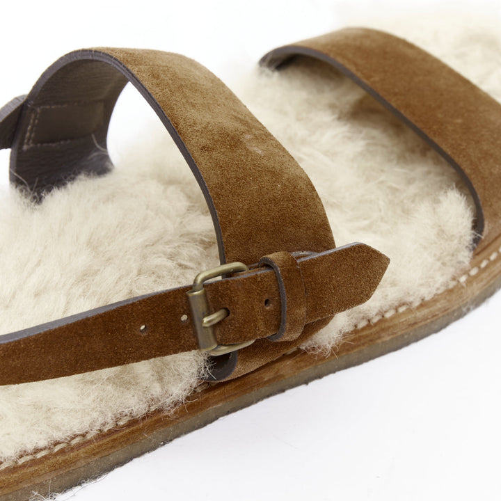 SAINT LAURENT Joan Noe tan leather cream shearling lined sandals EU38