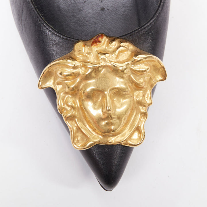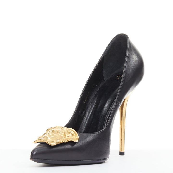 VERSACE Medusa black gold emblem metal heel pump EU38 Lady Gaga