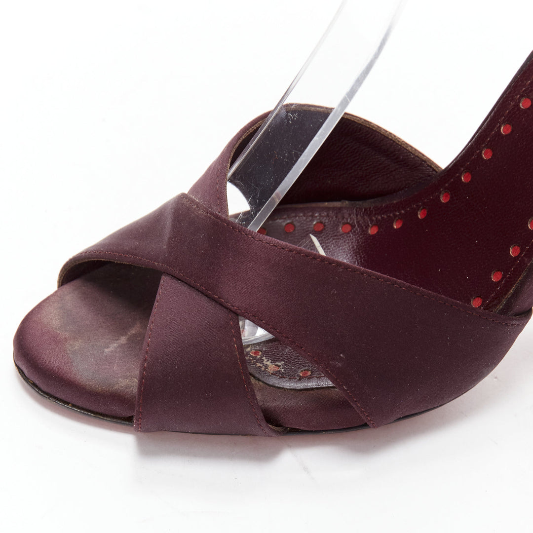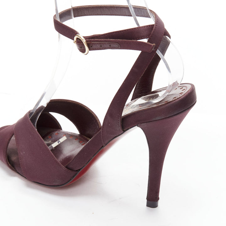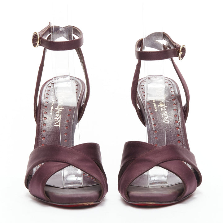YVES SAINT LAURENT dark purple satin red sole sandal heels EU38