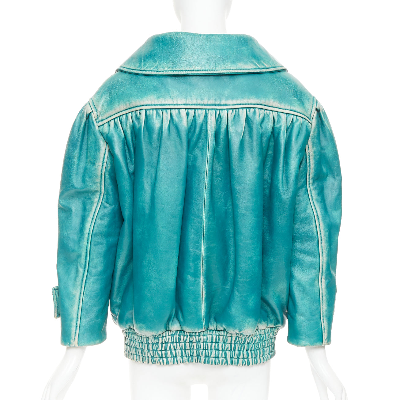 rare MIU MIU 2018 Runway green washed distressed lambskin leather oversized jacket IT36 XXS