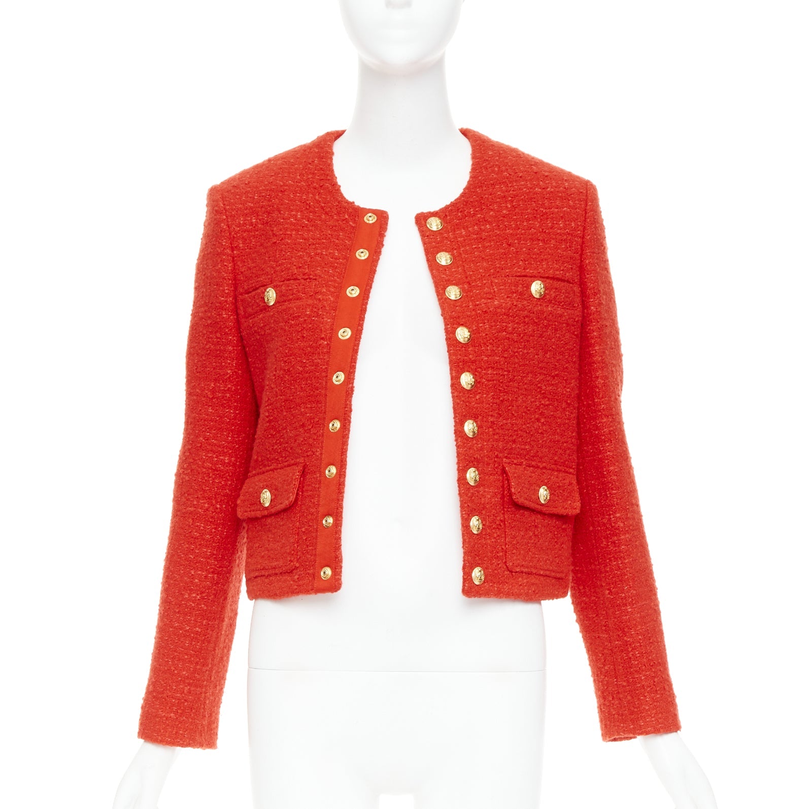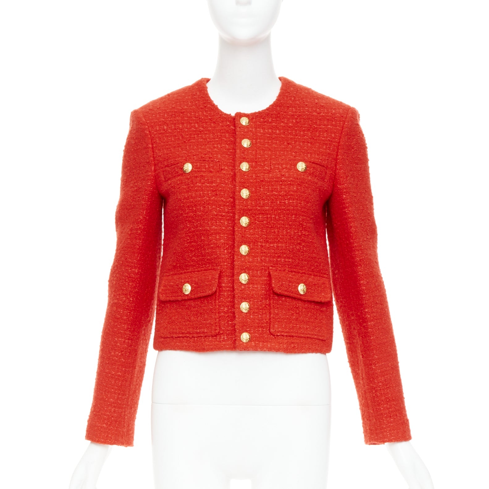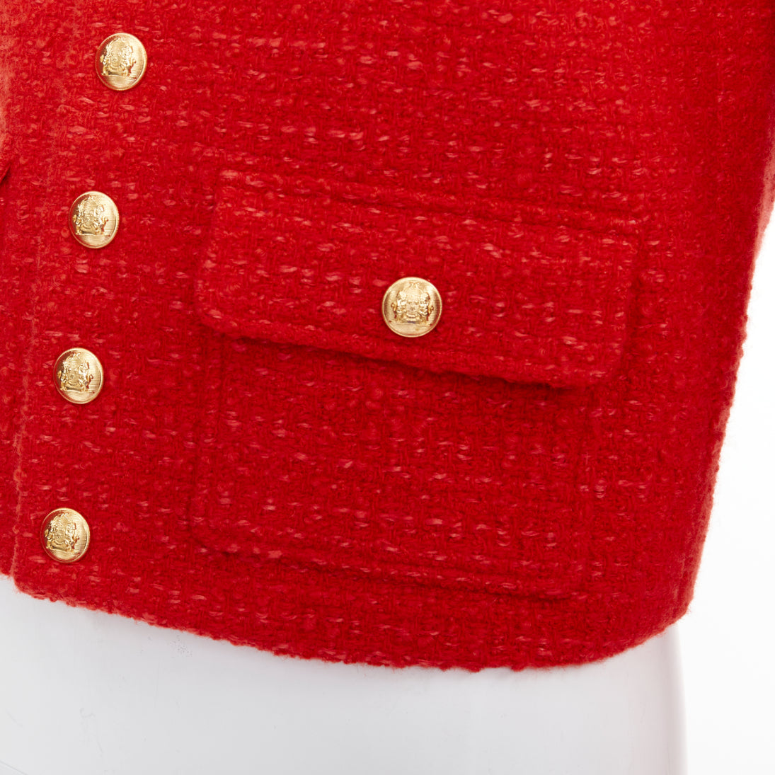 CELINE Chasseur red wool linen tweed gold buttons cropped jacket FR34 XS