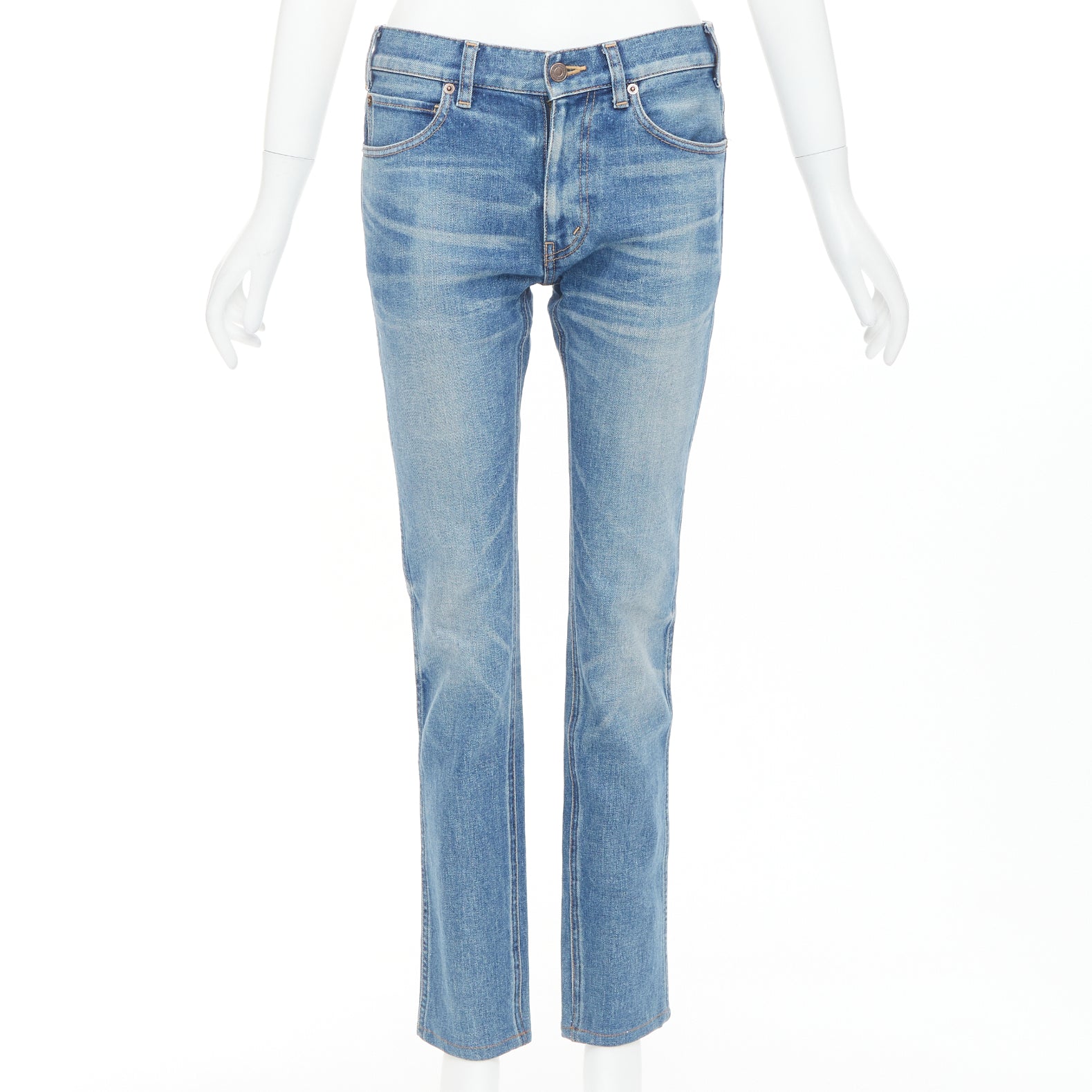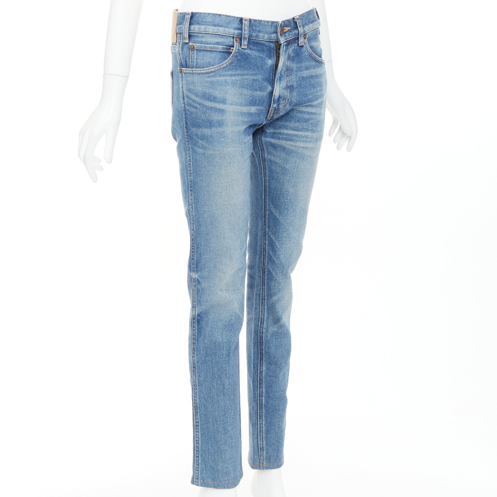 CELINE M_SK_004 N120 640E 07UW blue washed cotton minimal tab pocketed jeans 27"