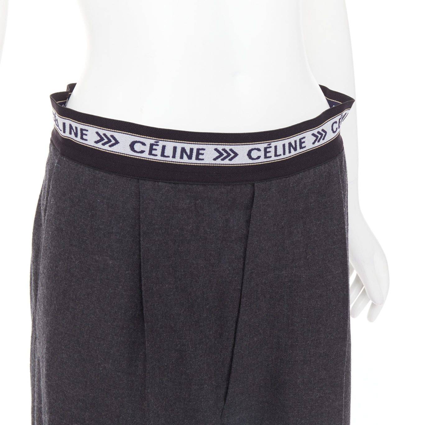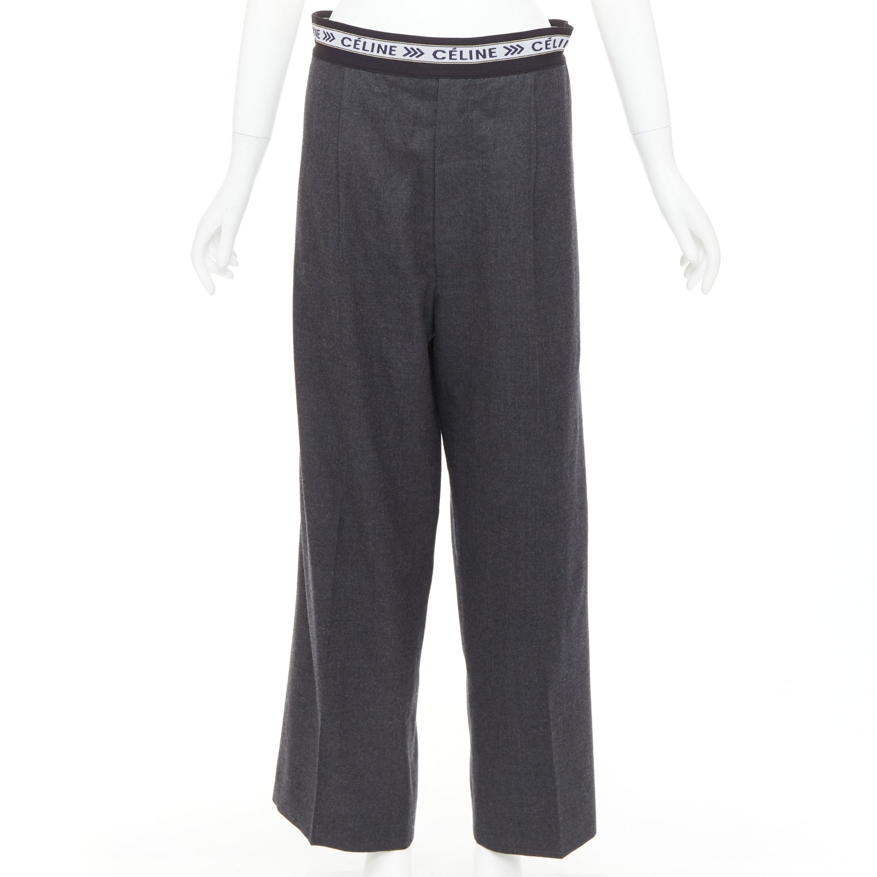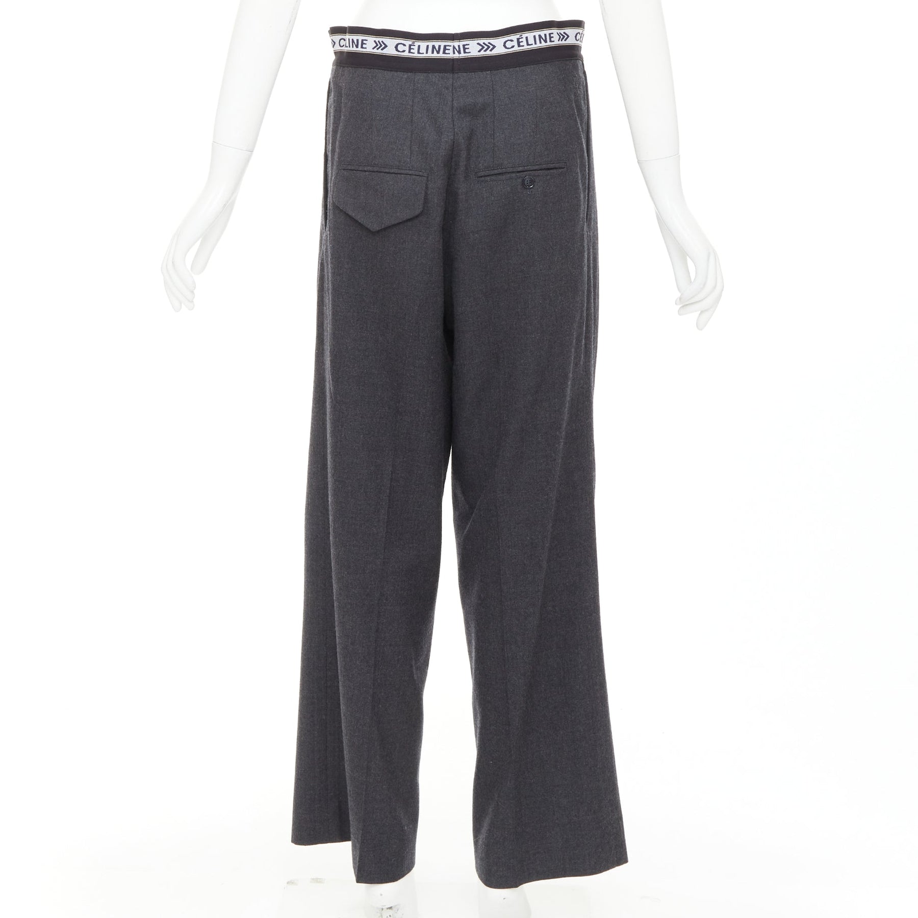 CELINE Phoebe Philo grey wool logo waistband wide leg trousers FR34 XS