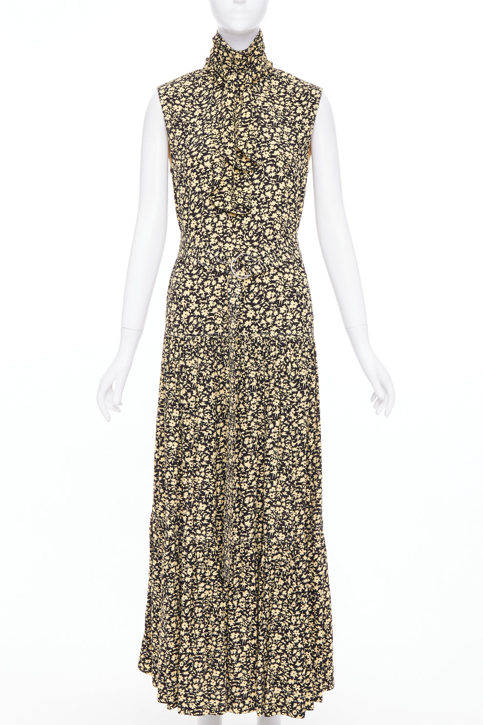 OLD CELINE Phoebe Philo 2016 Runway yellow black floral high neck midi dress FR36 S