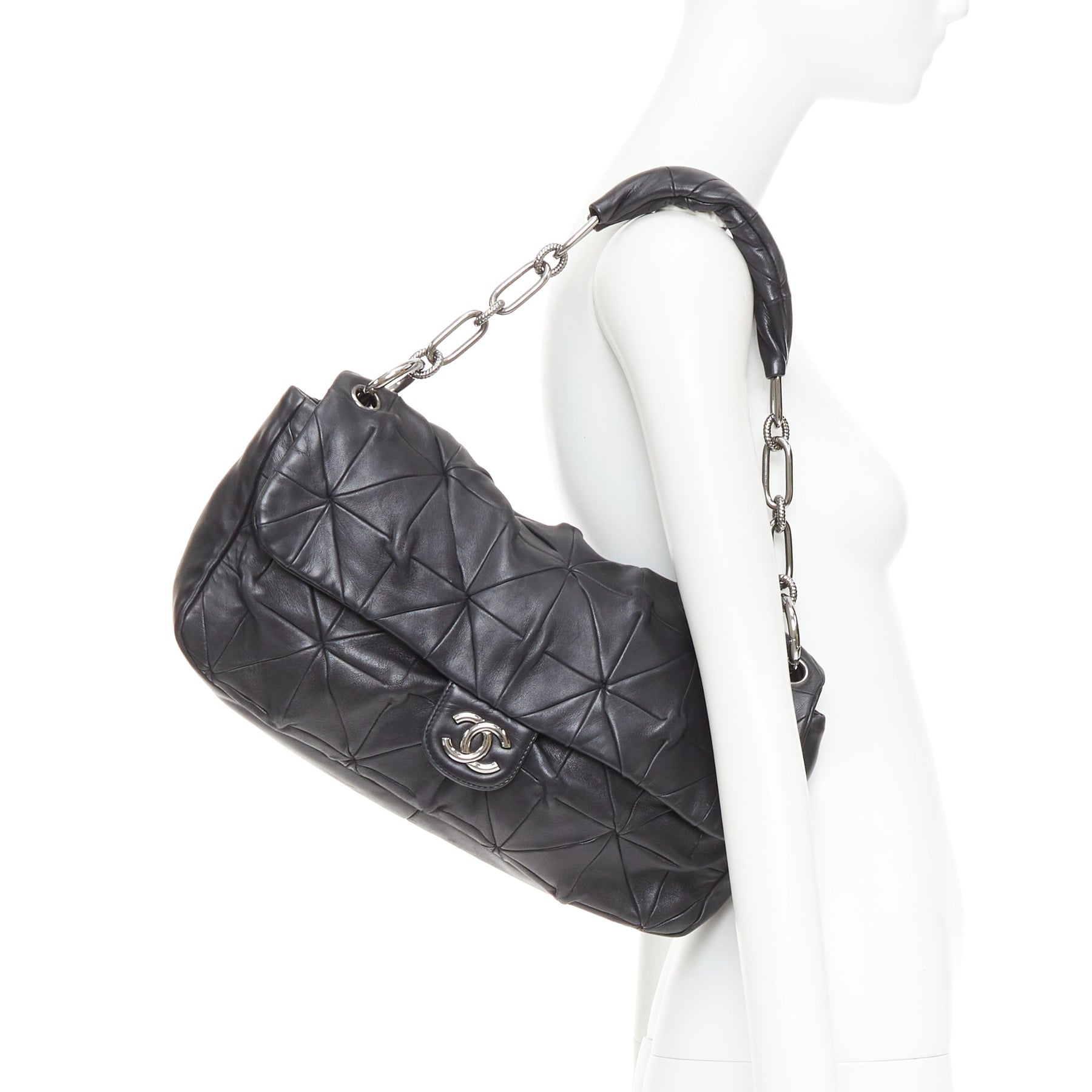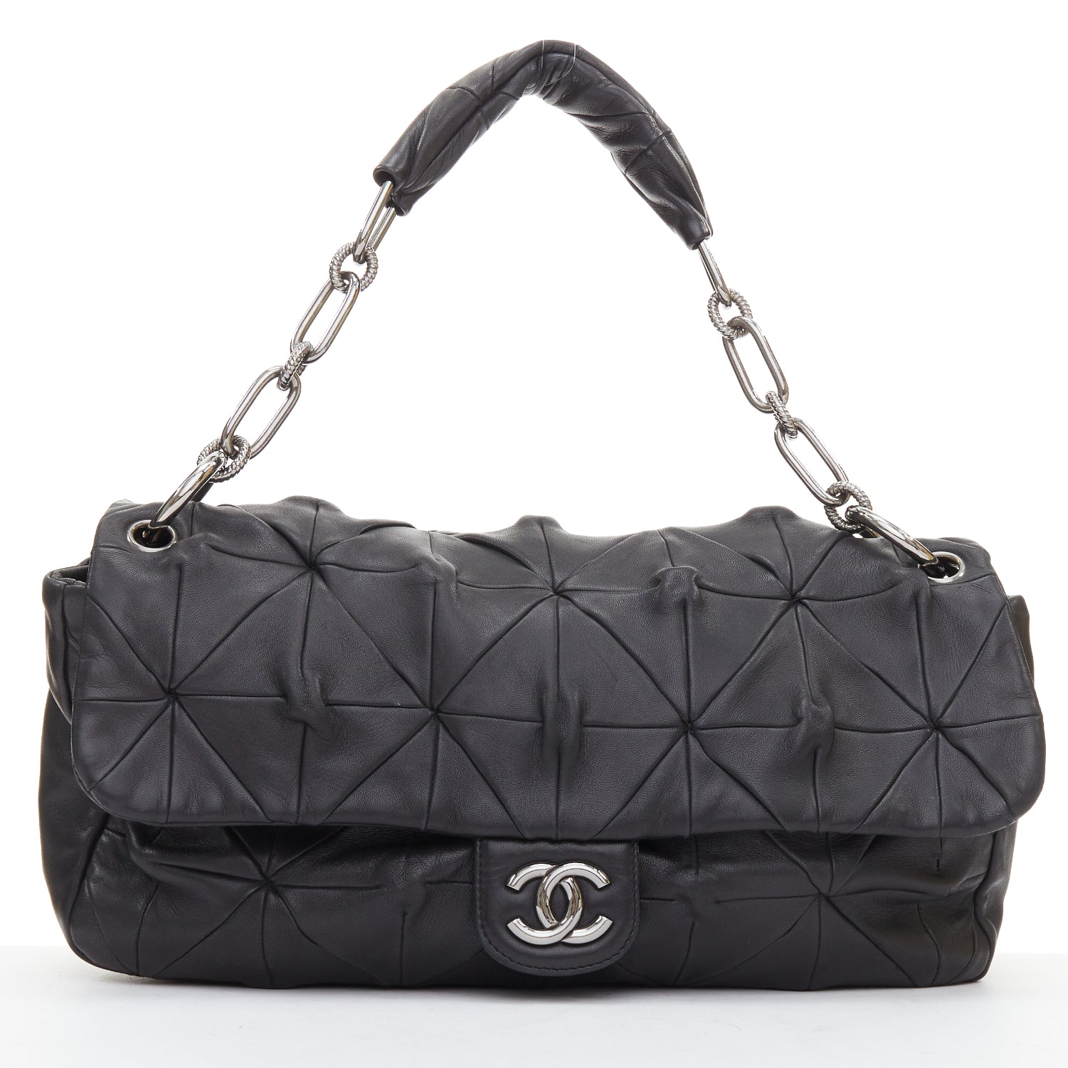 CHANEL Soft Squares Origami black leather silver CC logo chain shoulder flap bag