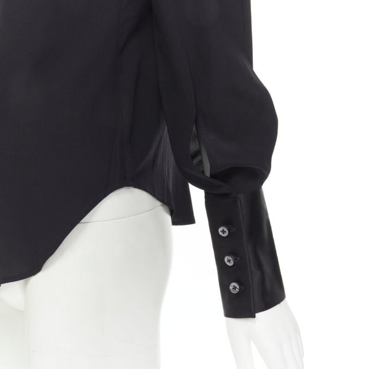 MAISON MARGIELA black cotton silk trim reversed button cuff shirt IT38 XS