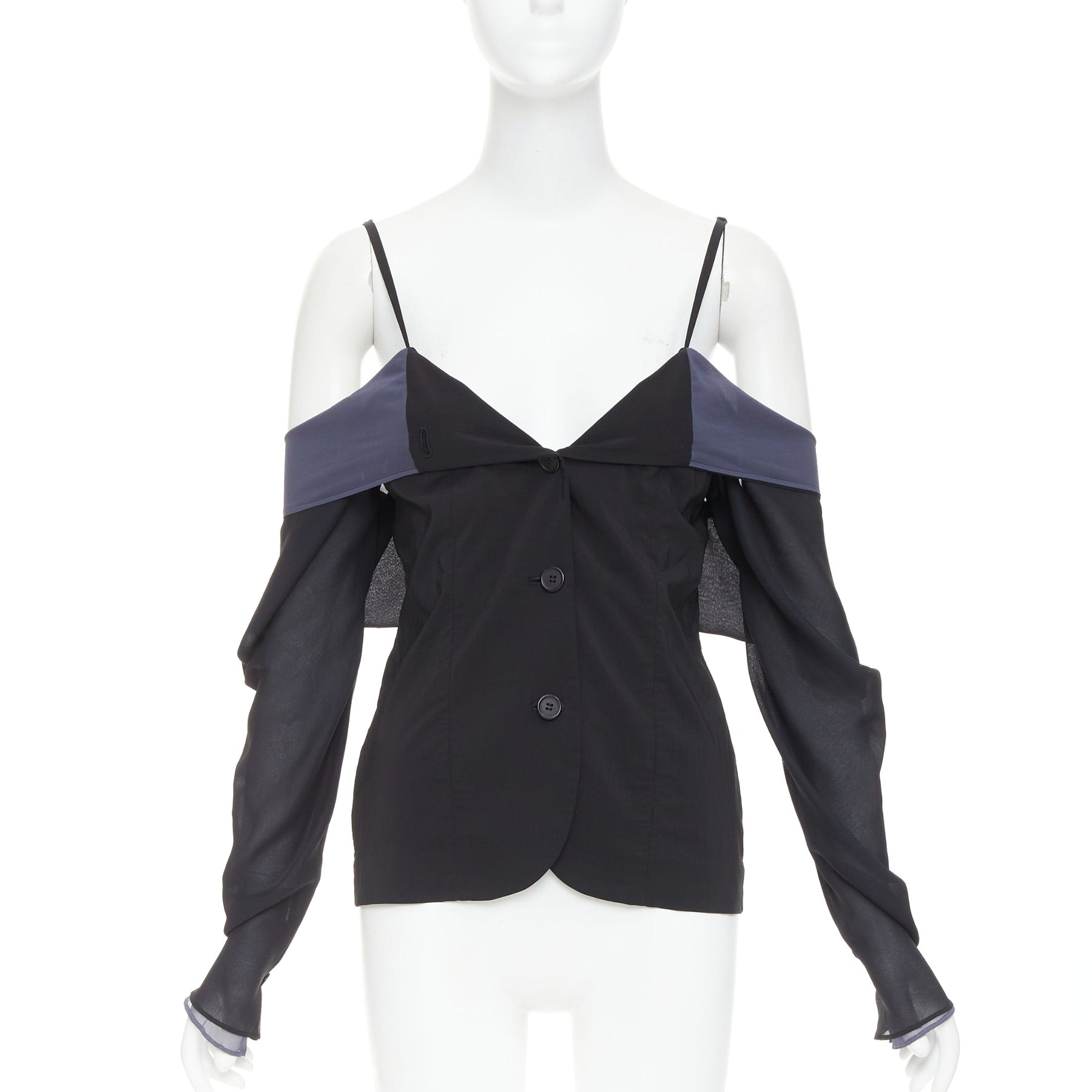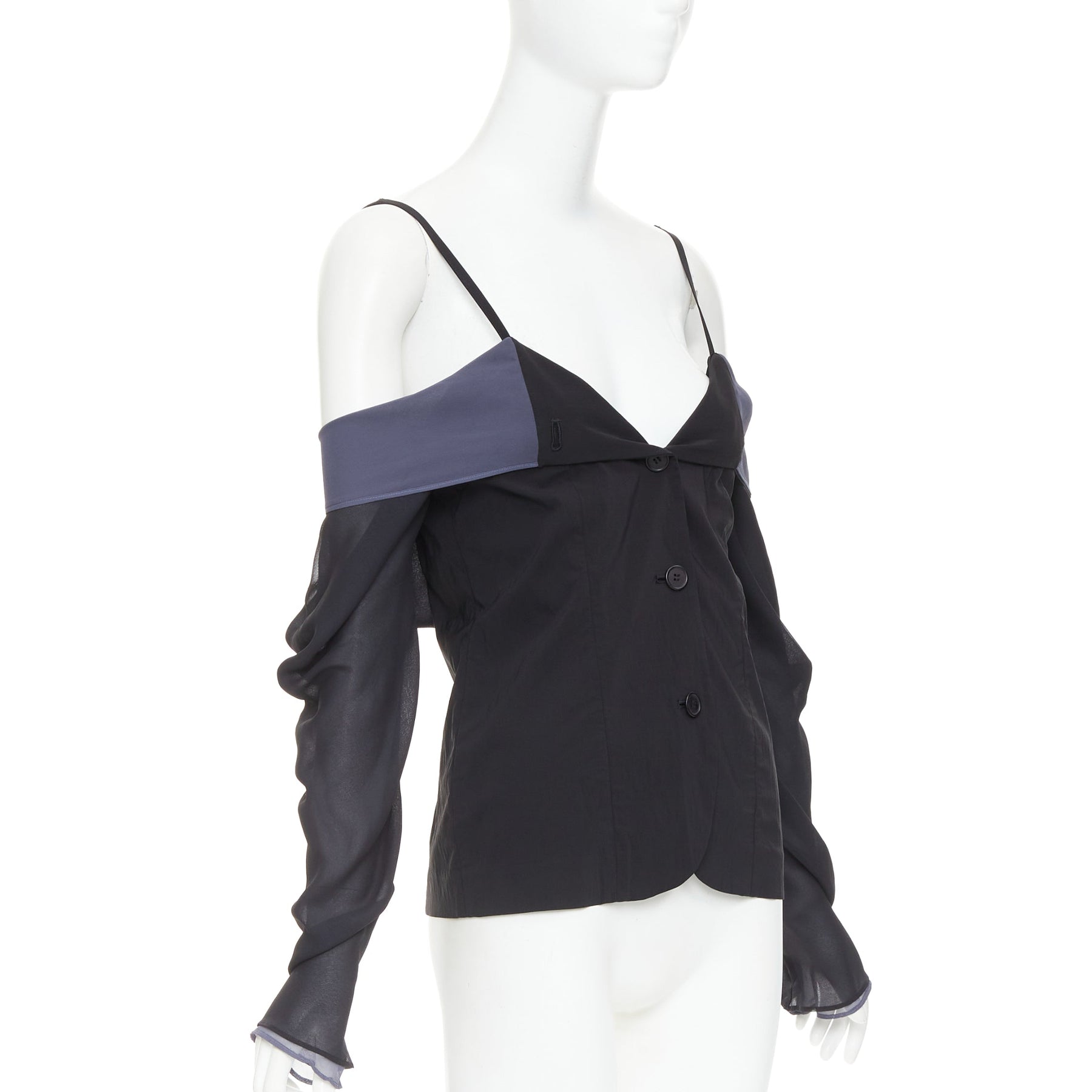 DOLCE GABBANA Vintage black grey cold off shoulder spaghetti button top