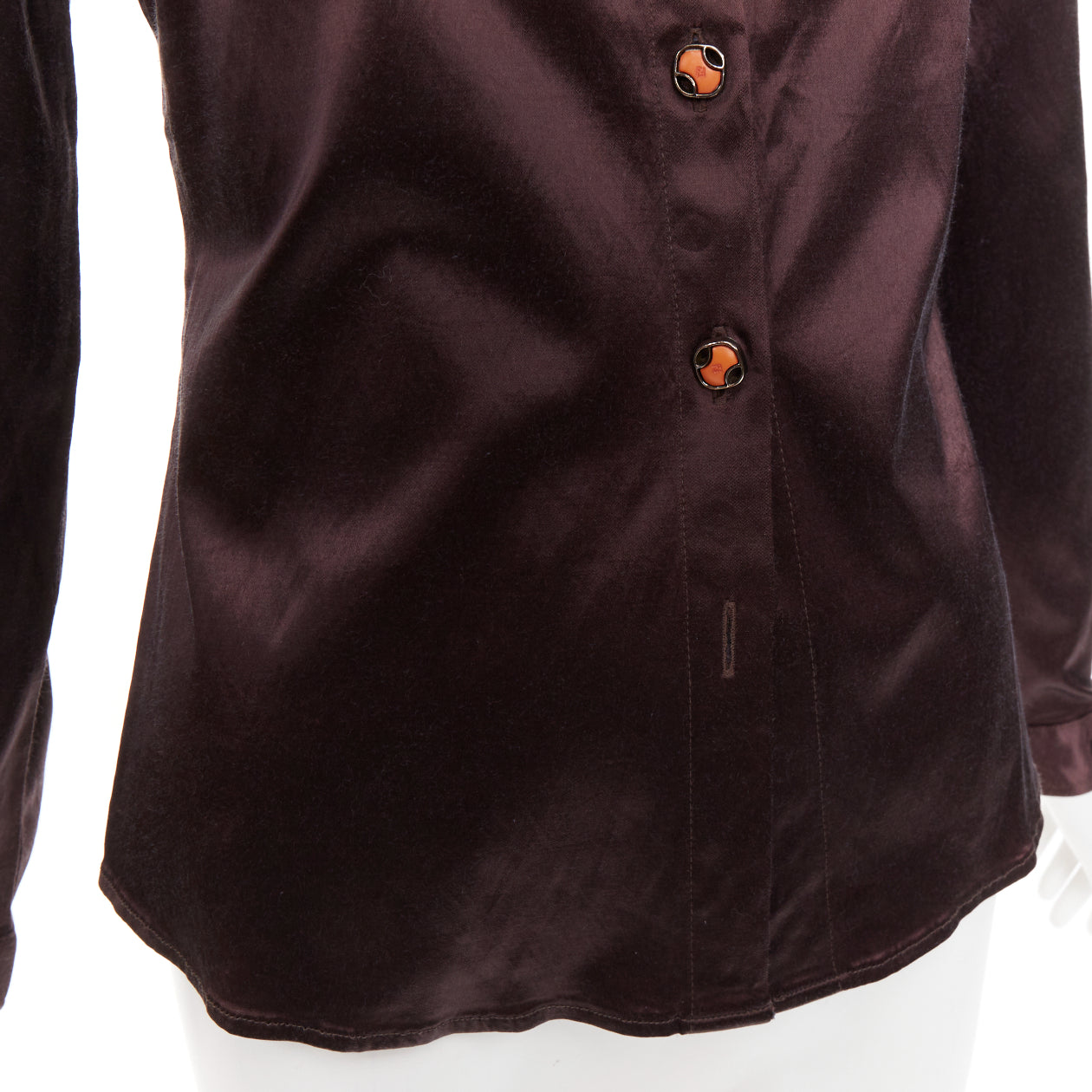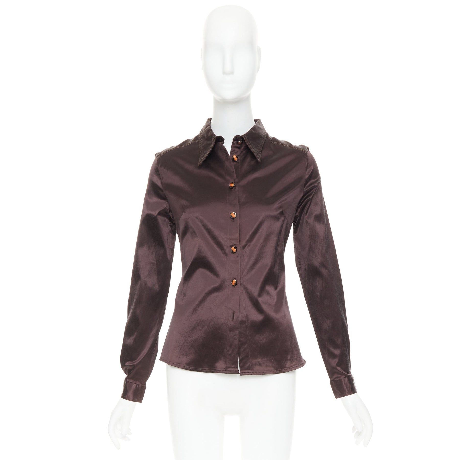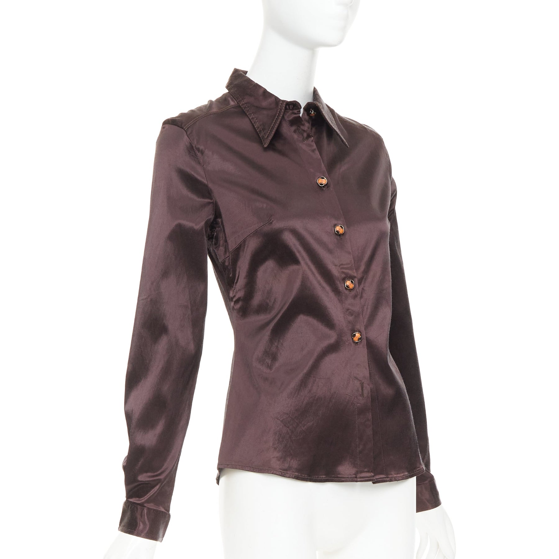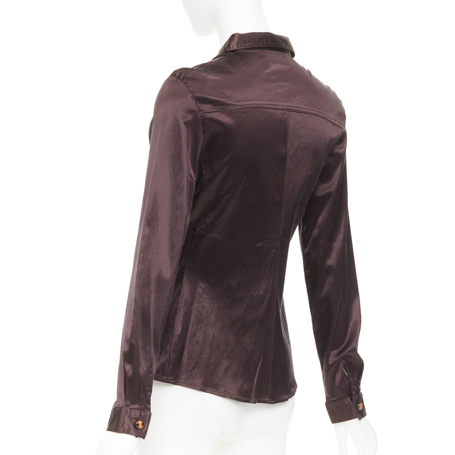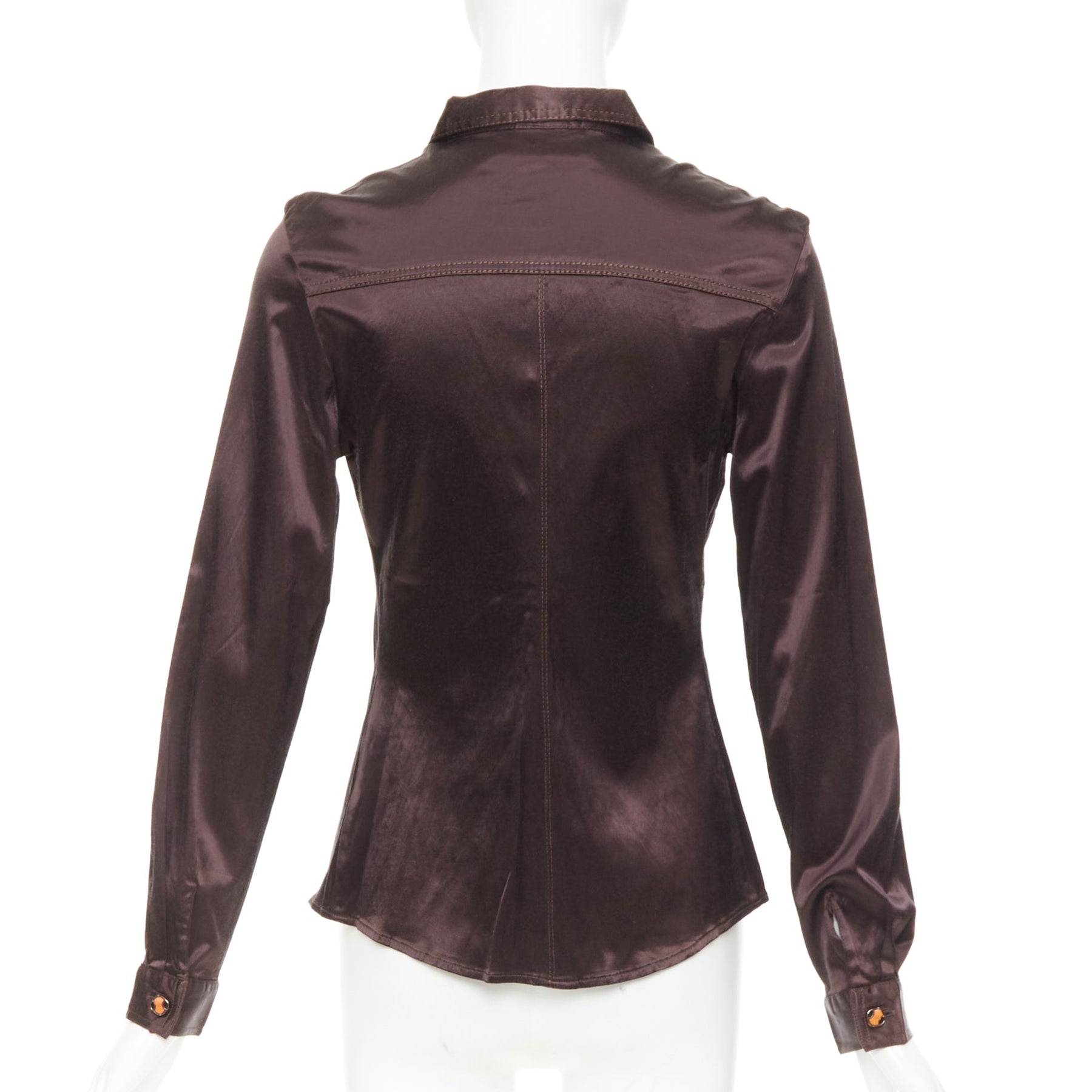 FENDI JEANS Vintage chocolate brown satin FF logo buttons fitted dress shirt