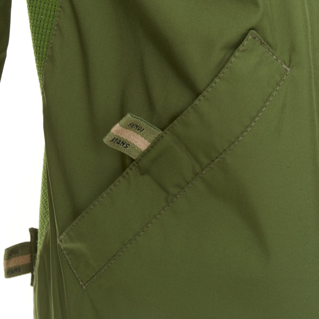 FENDI JEANS Vintage green nylon technical small logo zip up jacket