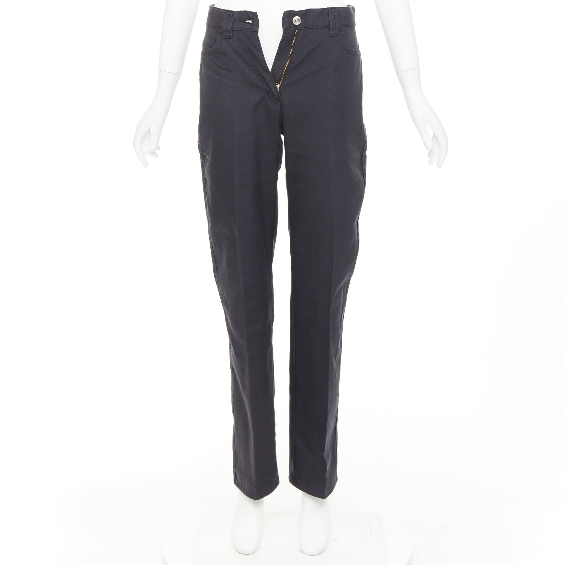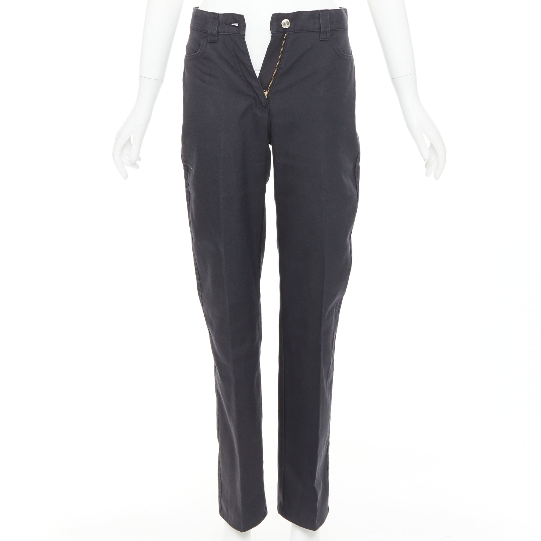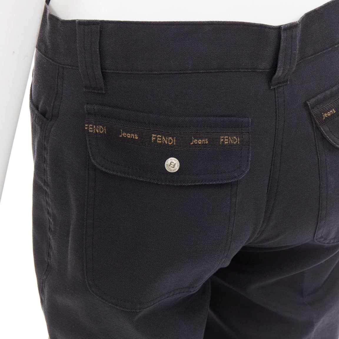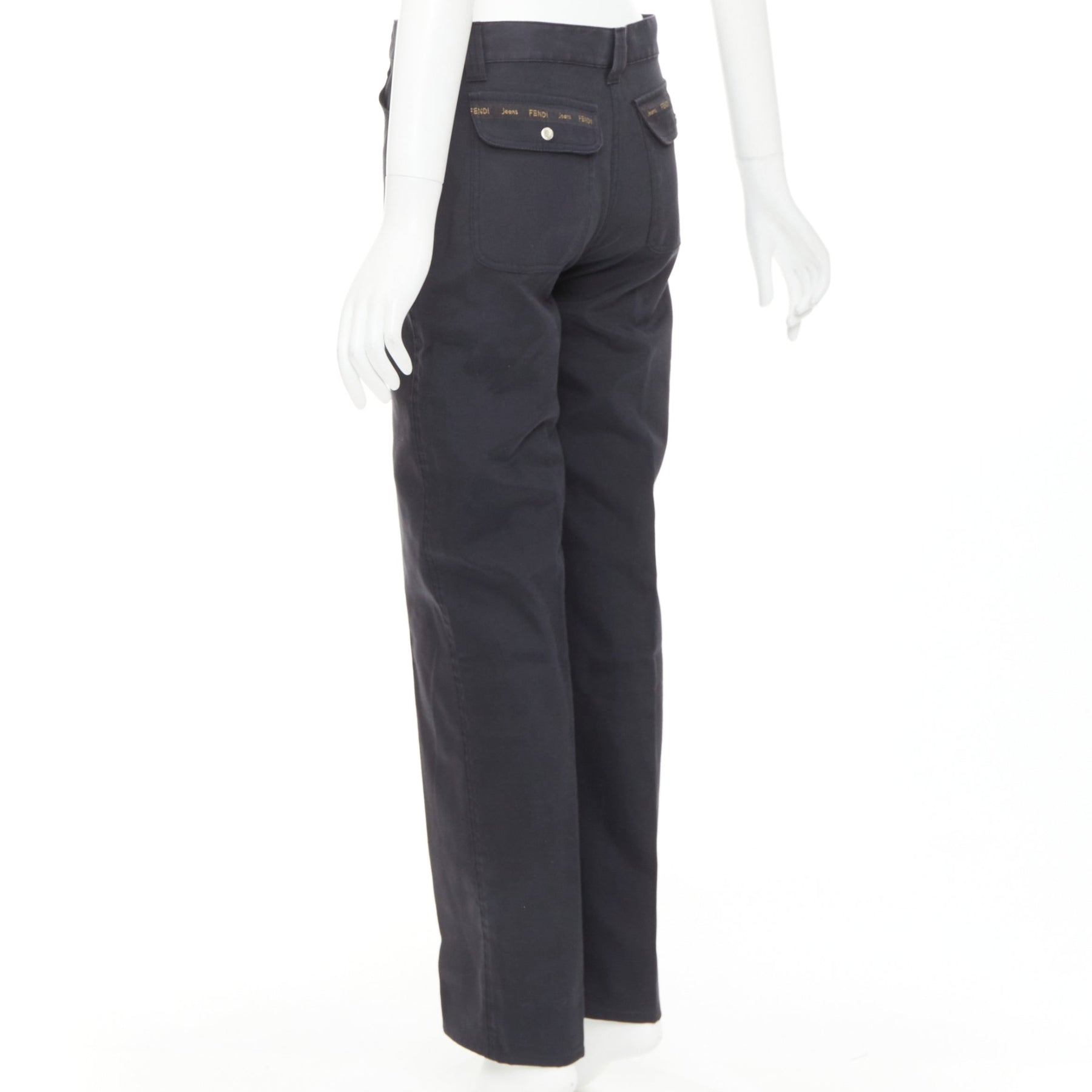 FENDI JEANS Vintage grey denim yellow logo tape flap pocket straight jean IT42 M