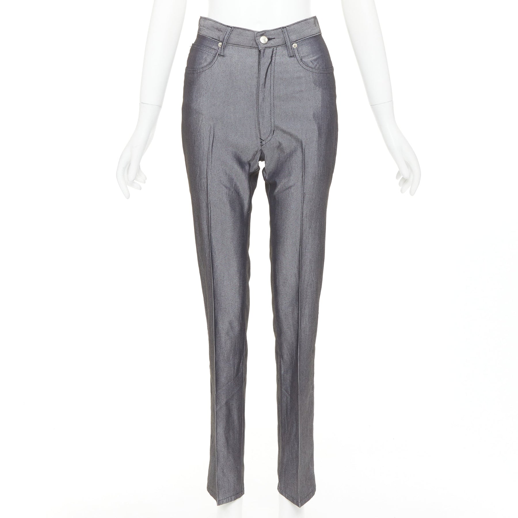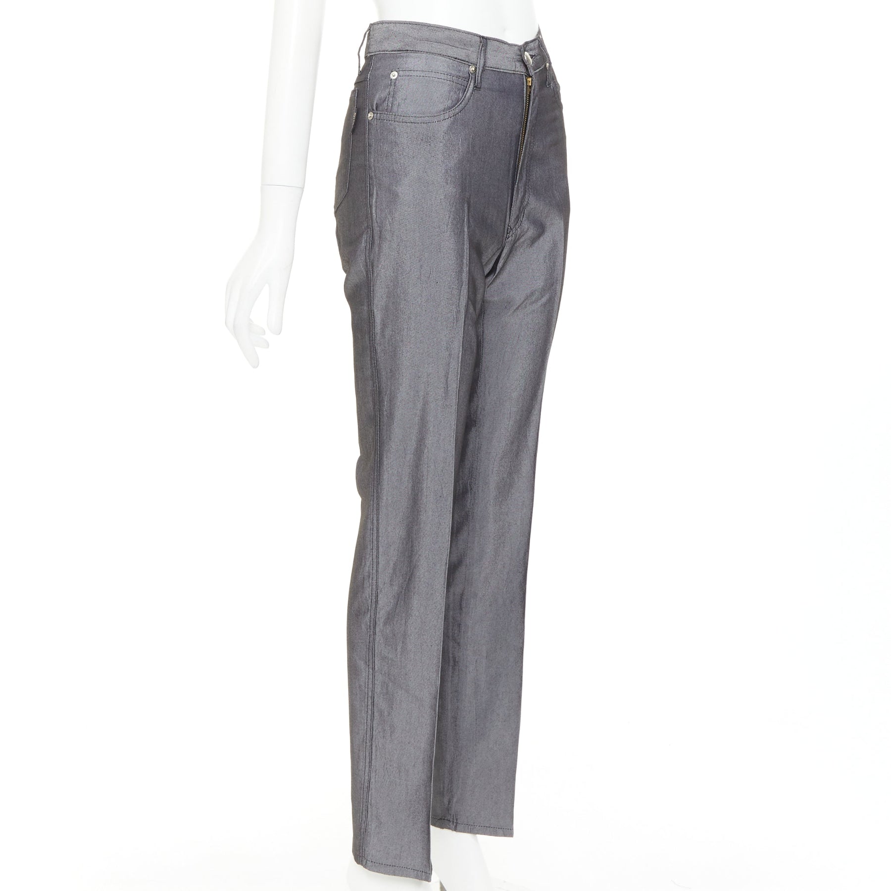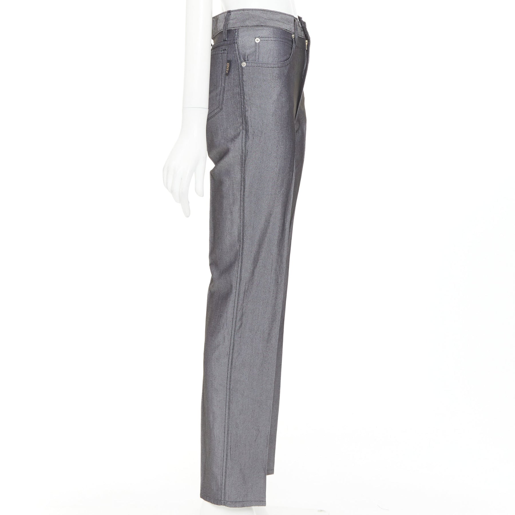 FENDI JEANS Vintage grey yellow logo tab pocket high waisted slim pants