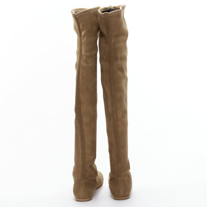 GIANVITO ROSSI Camoscio brown suede flat thigh high boots EU37