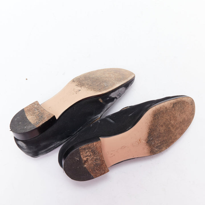 GIANVITO ROSSI grey velvet topstitched minimal slip on loafers EU38