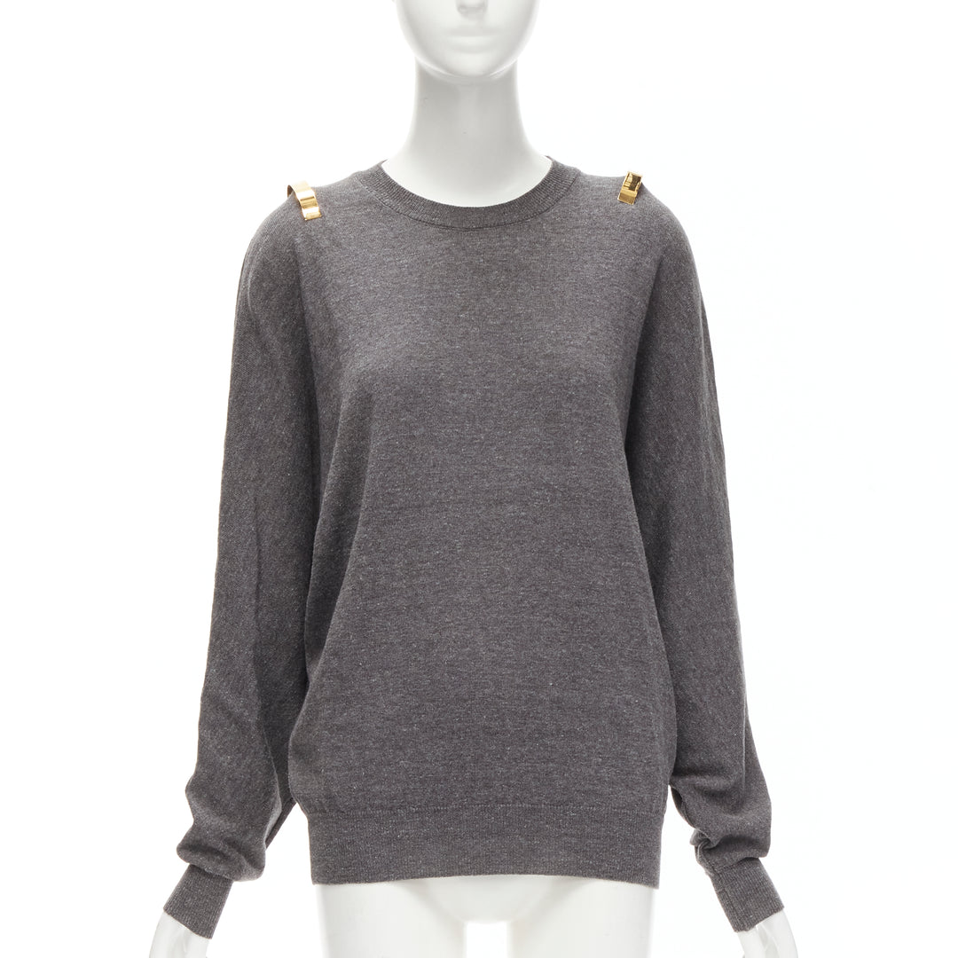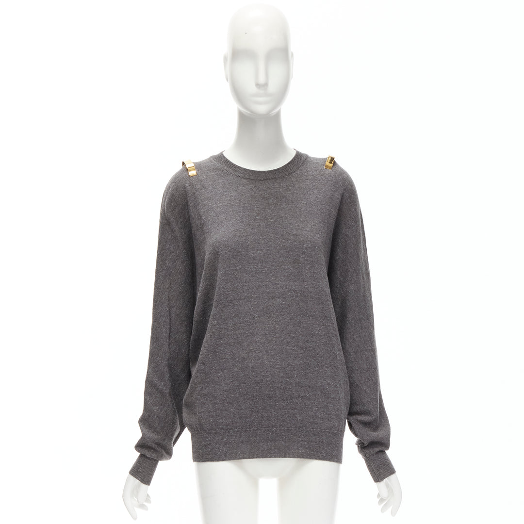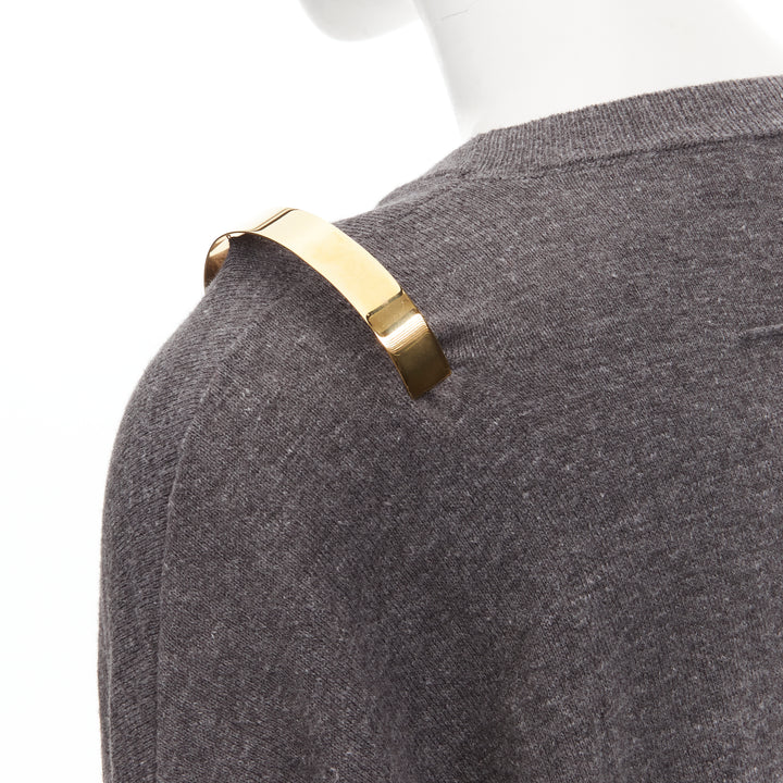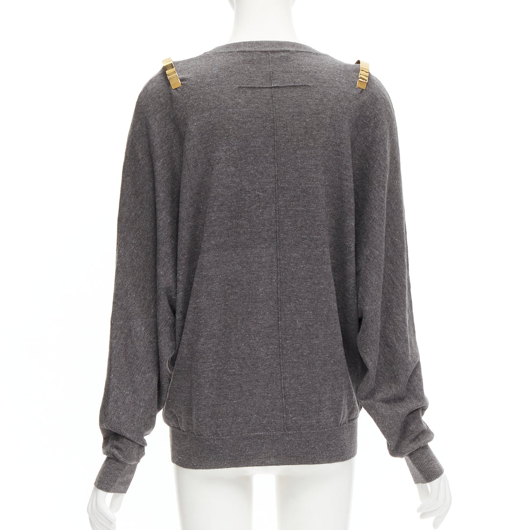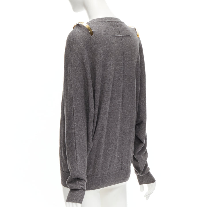GIVENCHY Riccardo Tisci gold metal shoulder bar cuff grey wool alpaca sweater S