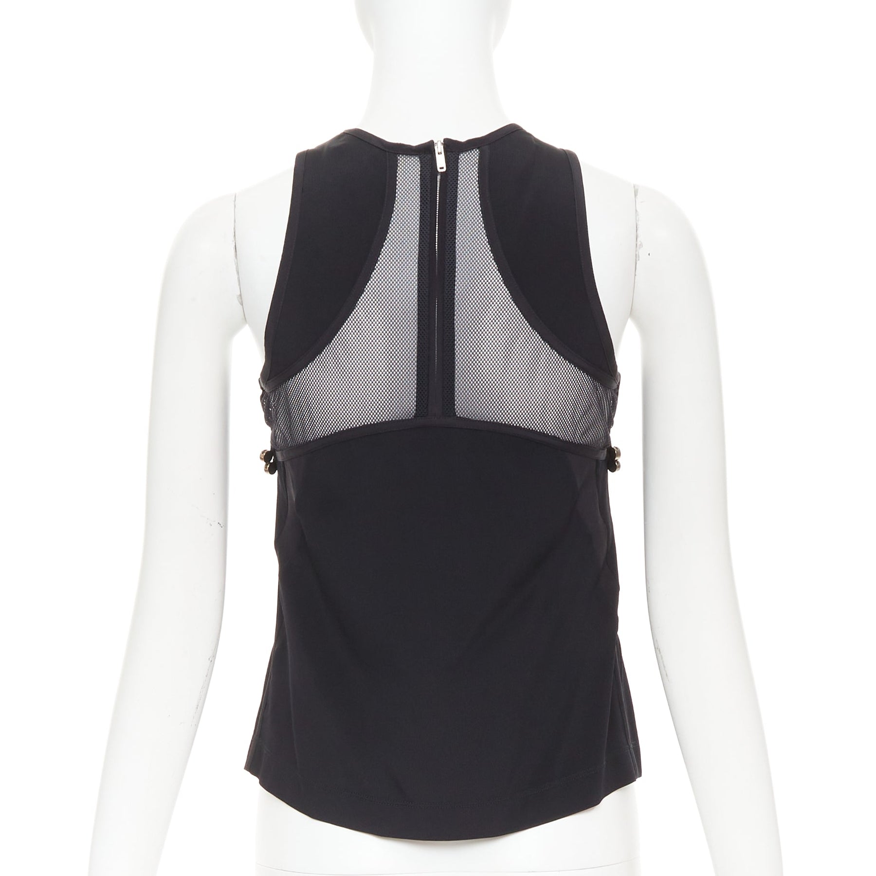 GUCCI 2009 black silk blend metal leather embellished tank top IT38 XS
