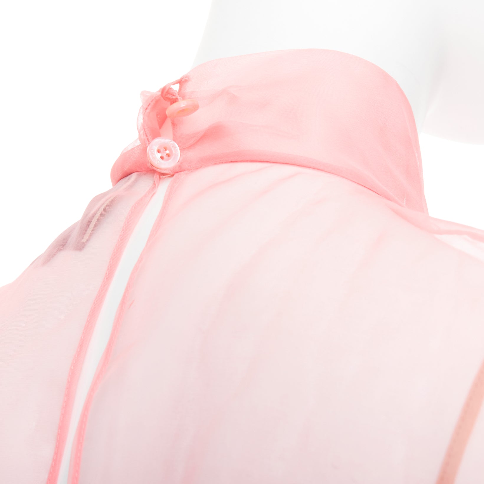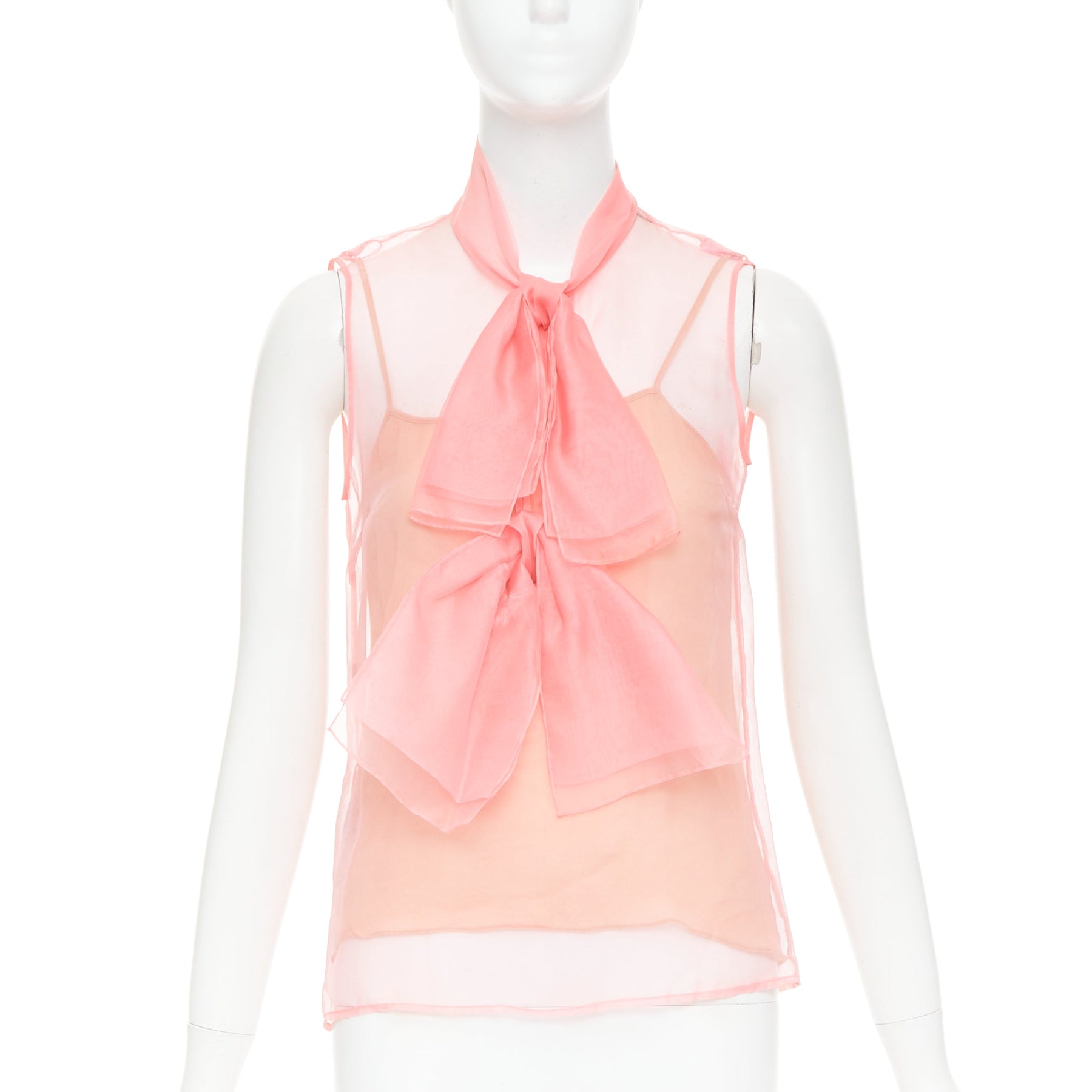 GUCCI 2015 pink silk organza sheer pussybow sleeveless blouse IT38 XS
