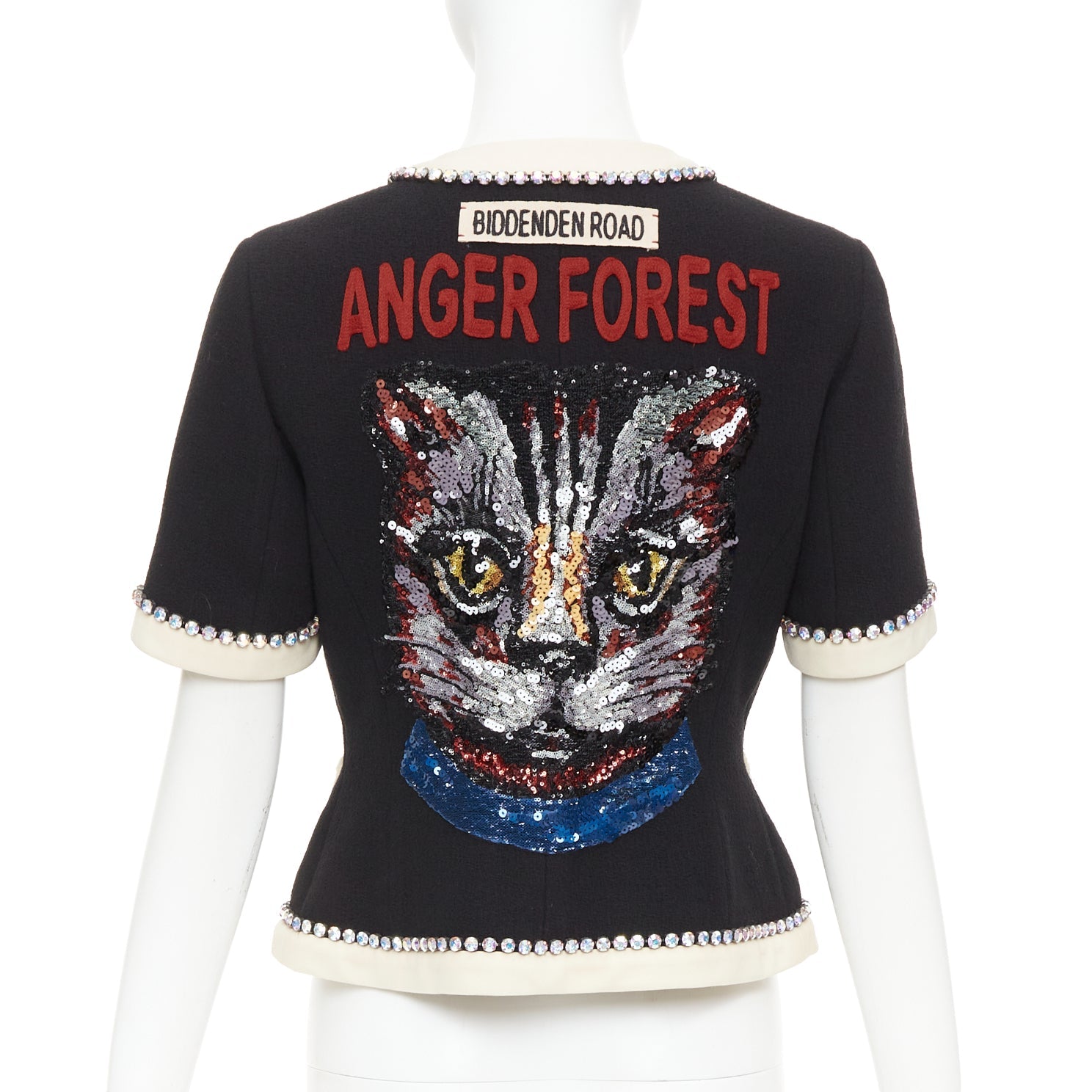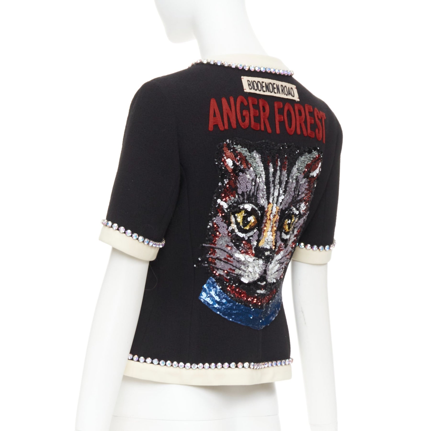 Extra Details: ANGER FOREST embroidered at back with sequin tiger print.