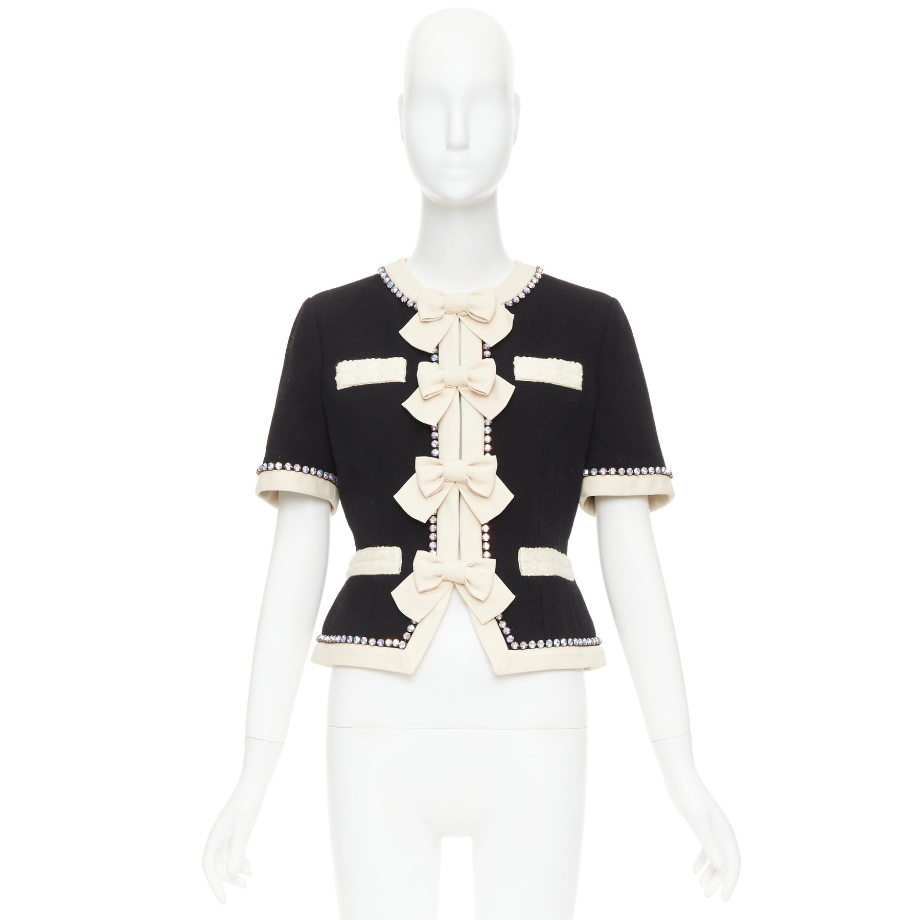 GUCCI 2017 Runway black tailleur crystal bow swarovski embellished wool jacket IT40 S