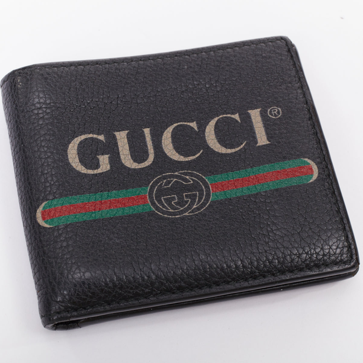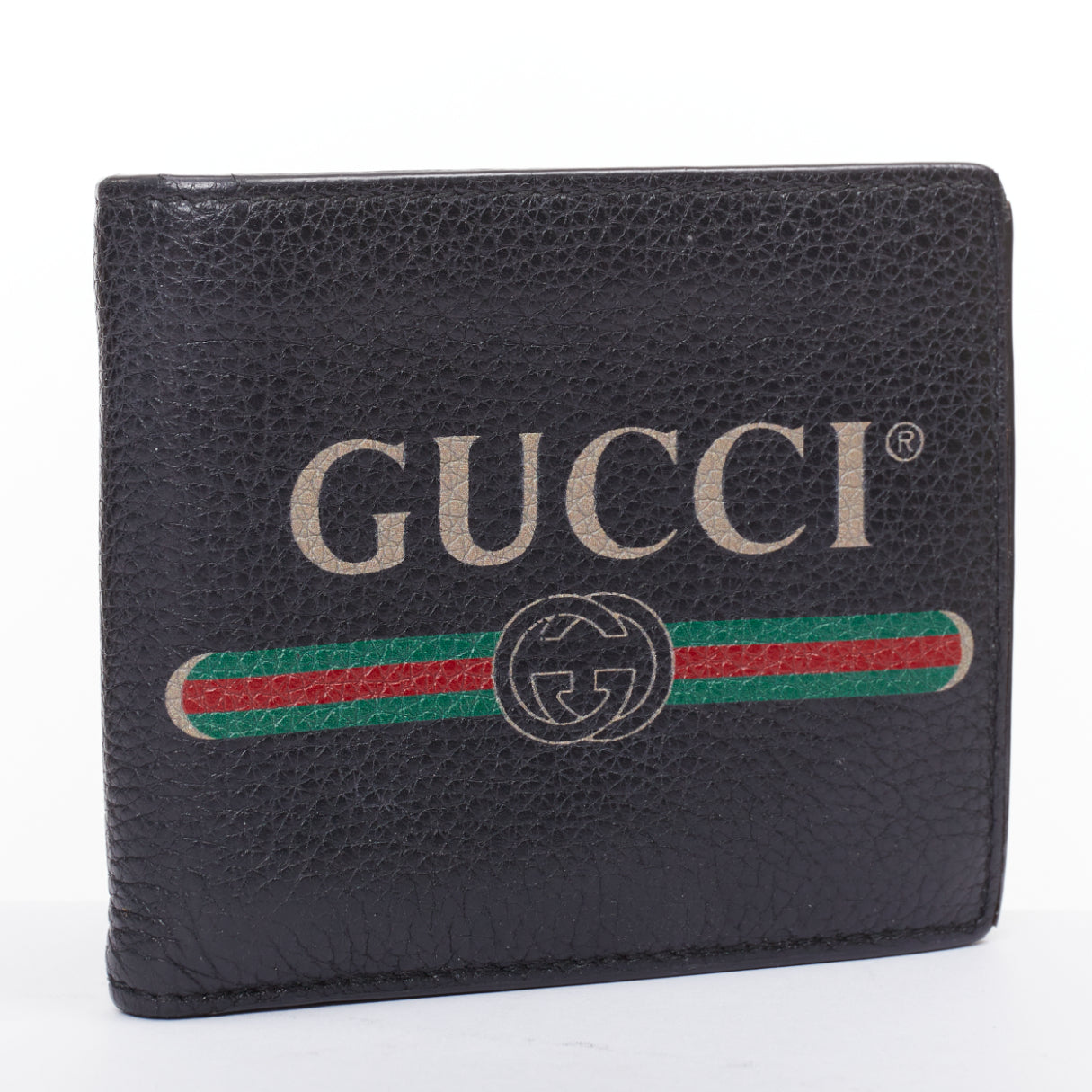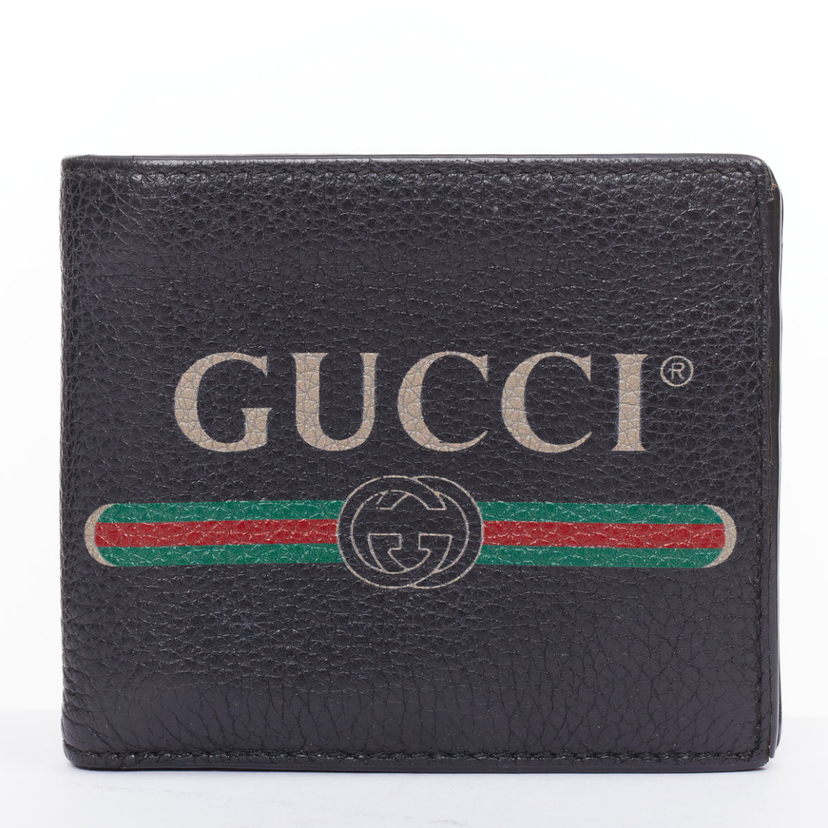 GUCCI black grained leather vintage logo bifold wallet
