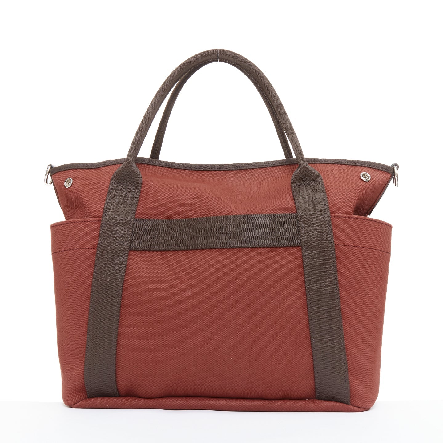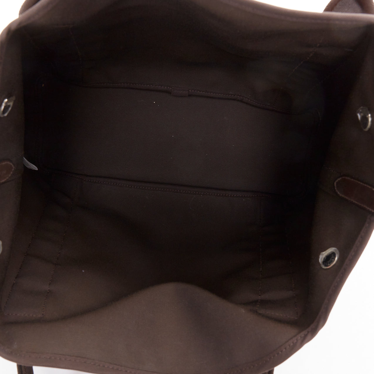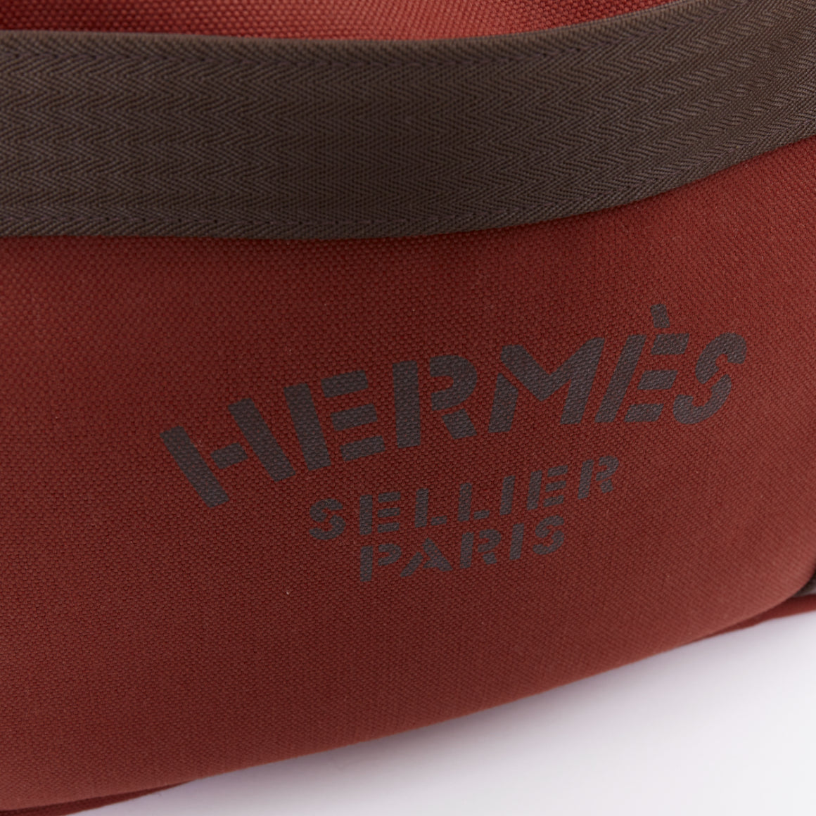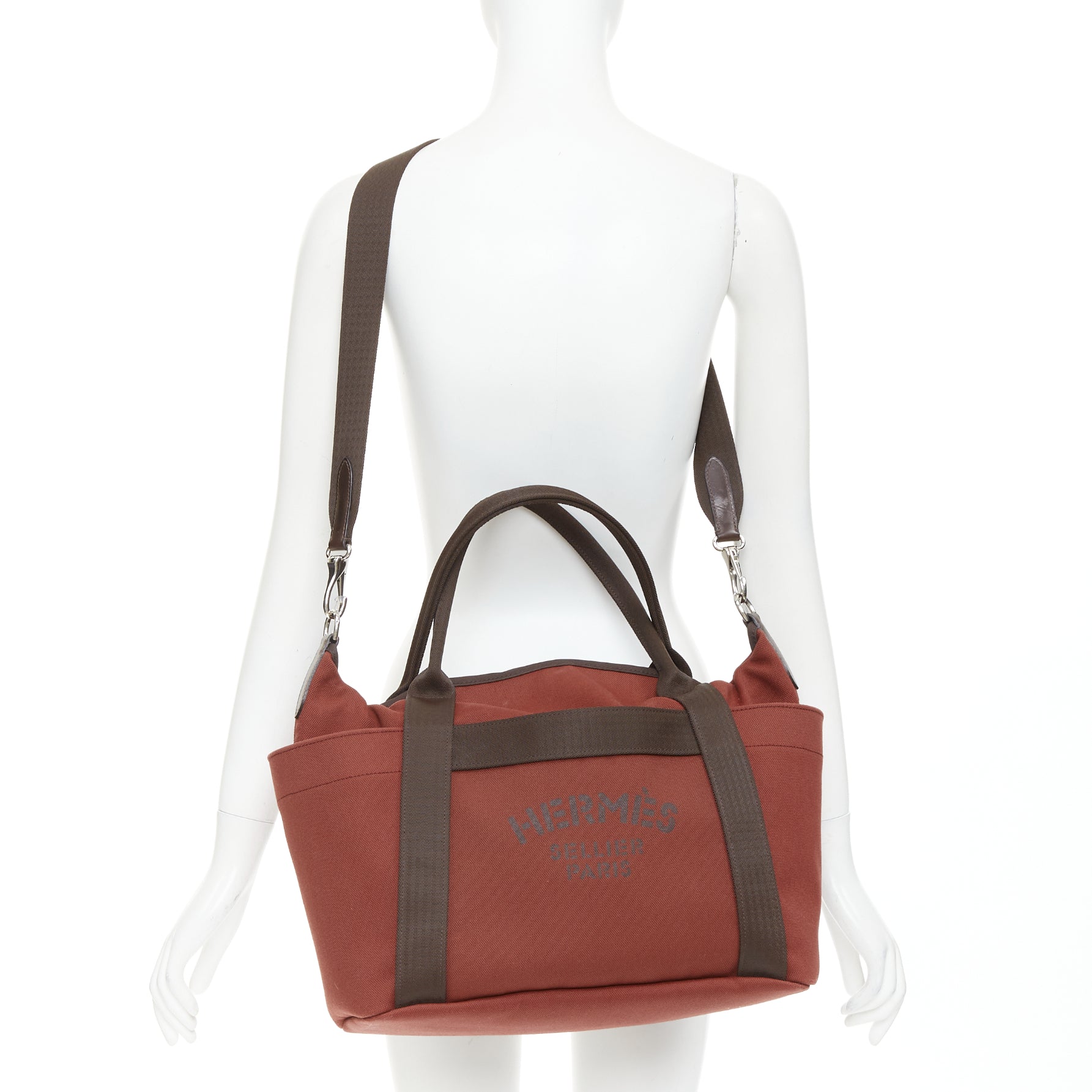 HERMES Sac de Panage Groom burgundy brown canvas logo tote bag