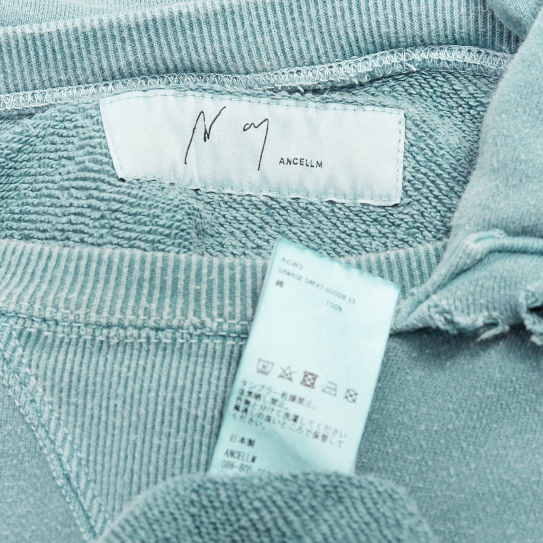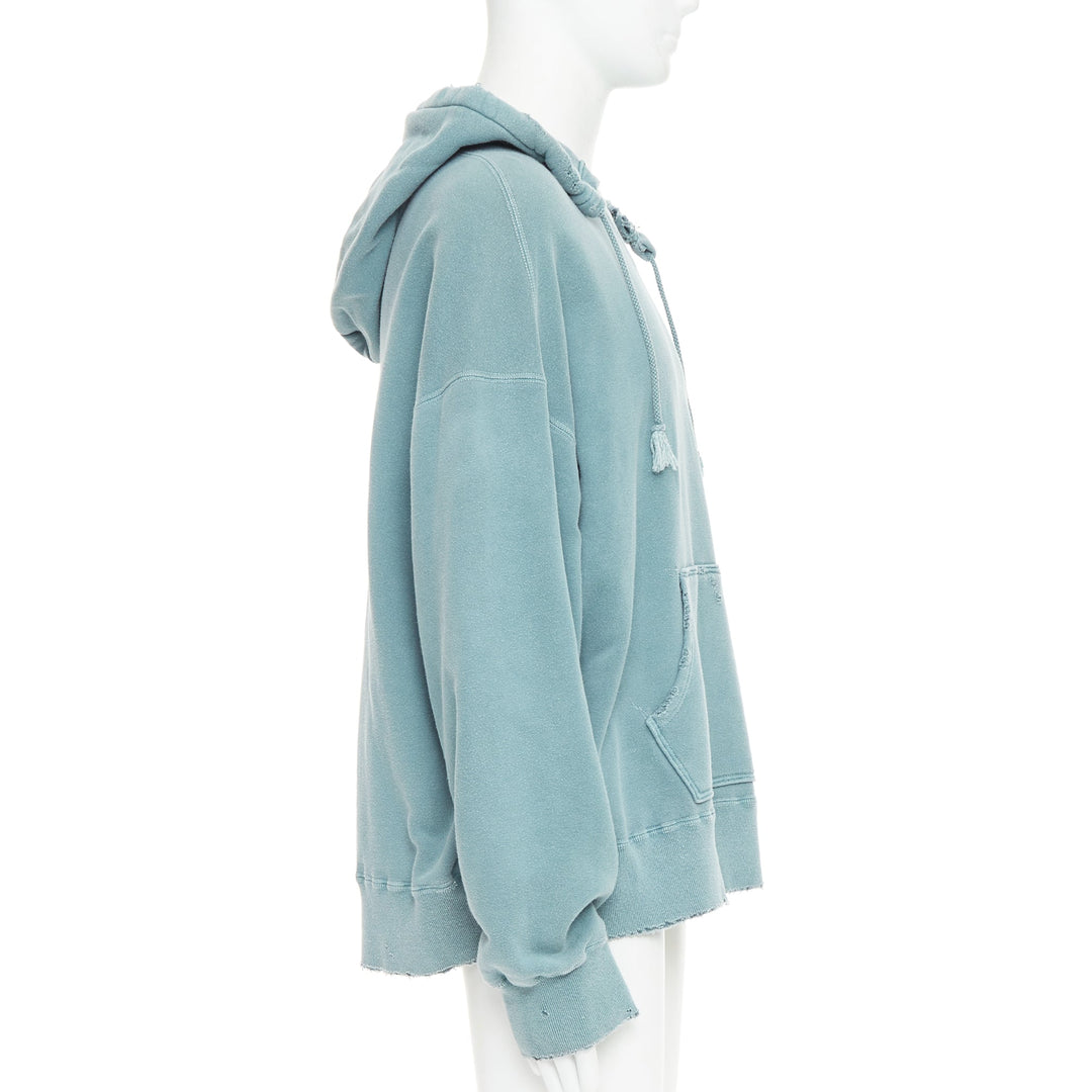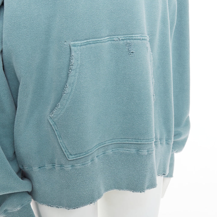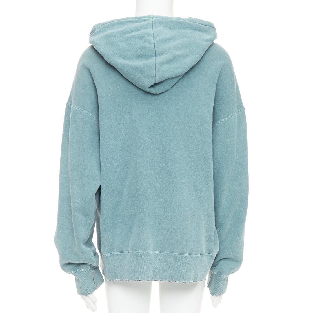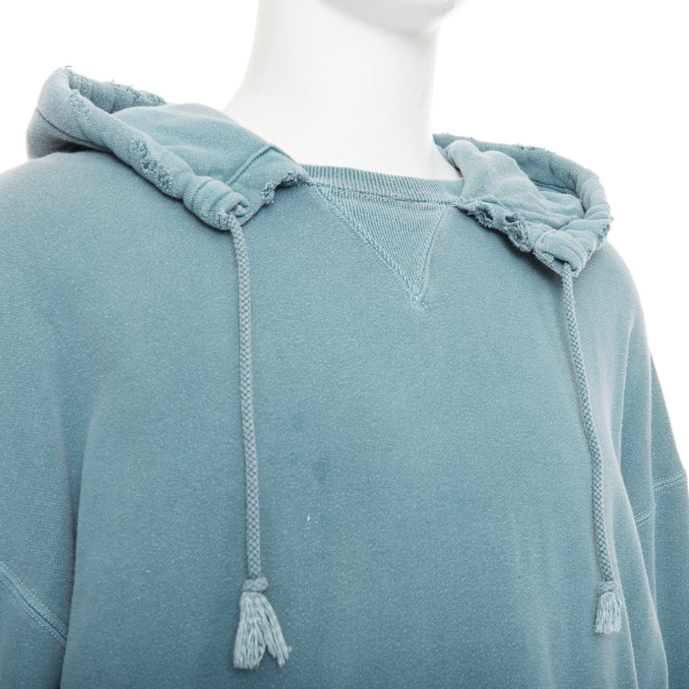 ANCELLM teal blue washed cotton drawstring distressed oversized hoodie JP1 S